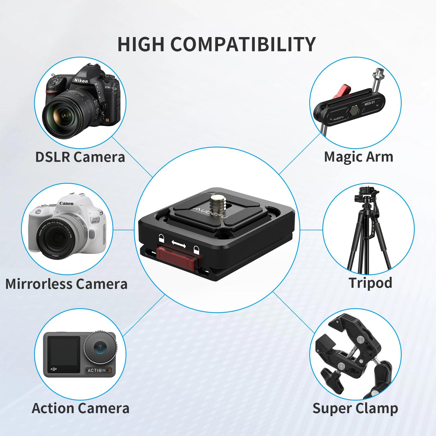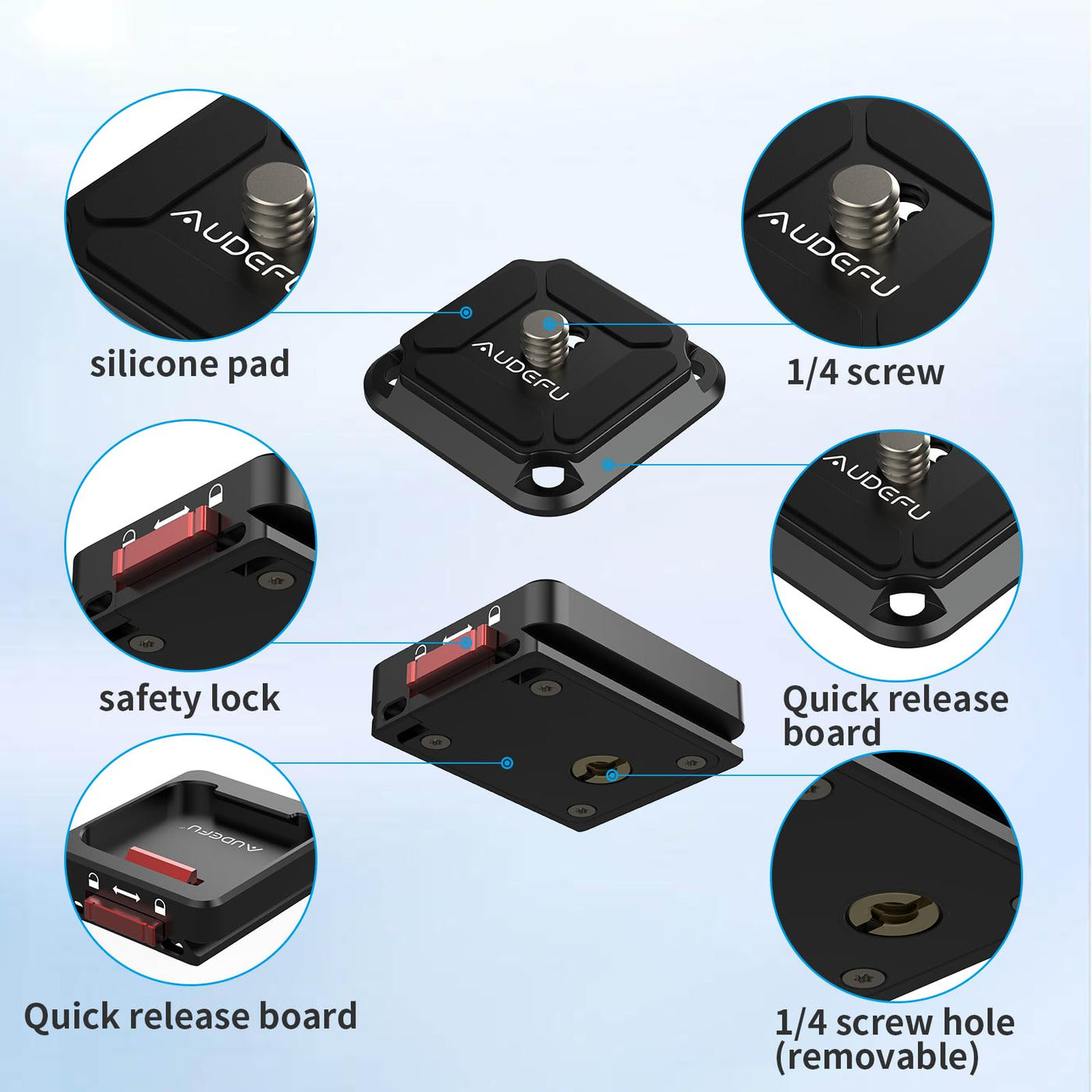 Audefu Universal Camera Quick Release Plate Kit With Shoulder Strap Mount - Includes Qr Plate, Tripod Mount Adapter, 1/4'' To 3/8'' Screw Thread - Compatible With Dslr Camera , Monopod, Stabilizer, And Slider For Easy Mount&Release