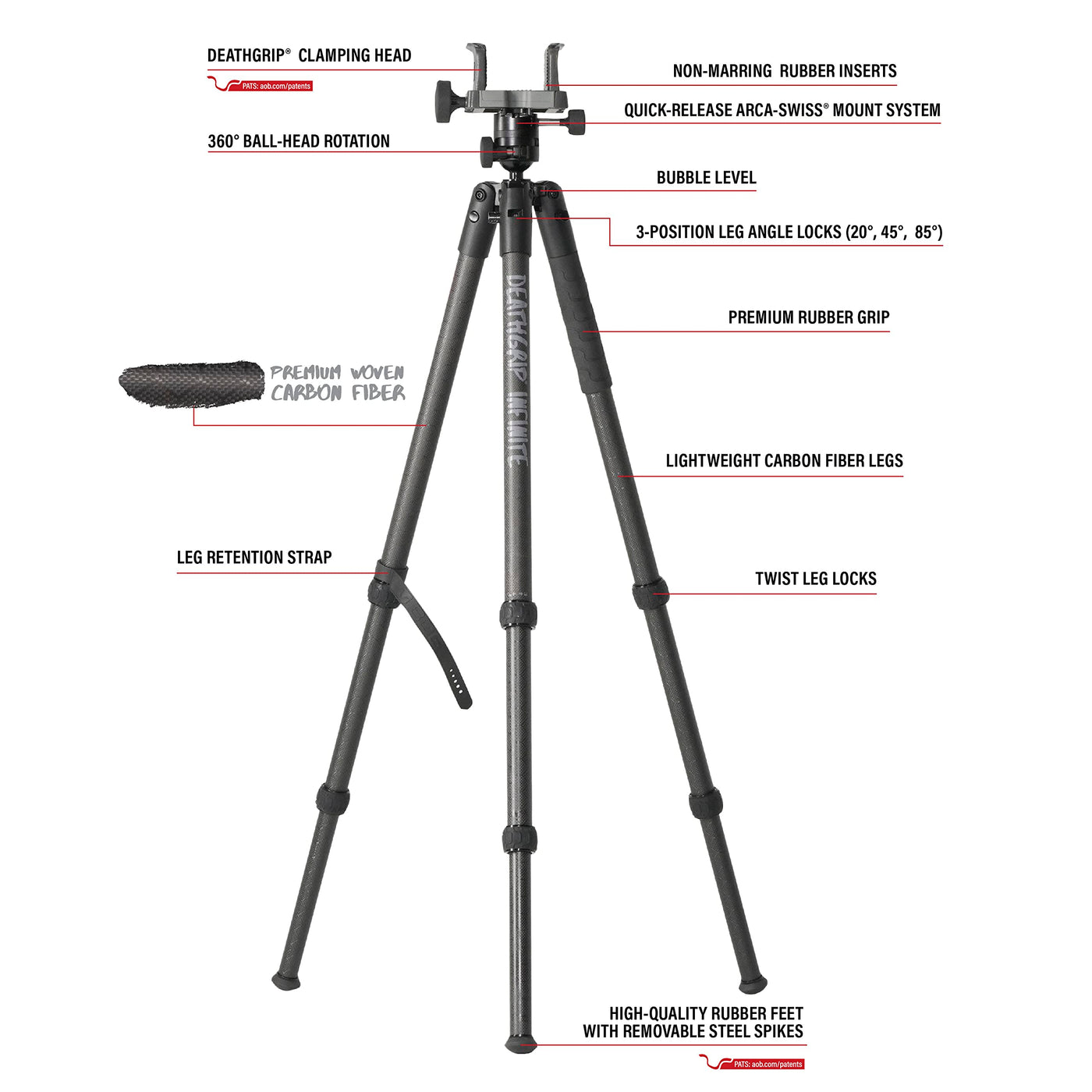 BOG DeathGrip Infinite Carbon Fiber Tripod - Heavy Duty, 360° Ball Head, Arca-Swiss Mount for Hunting & Outdoors, Black, One Size