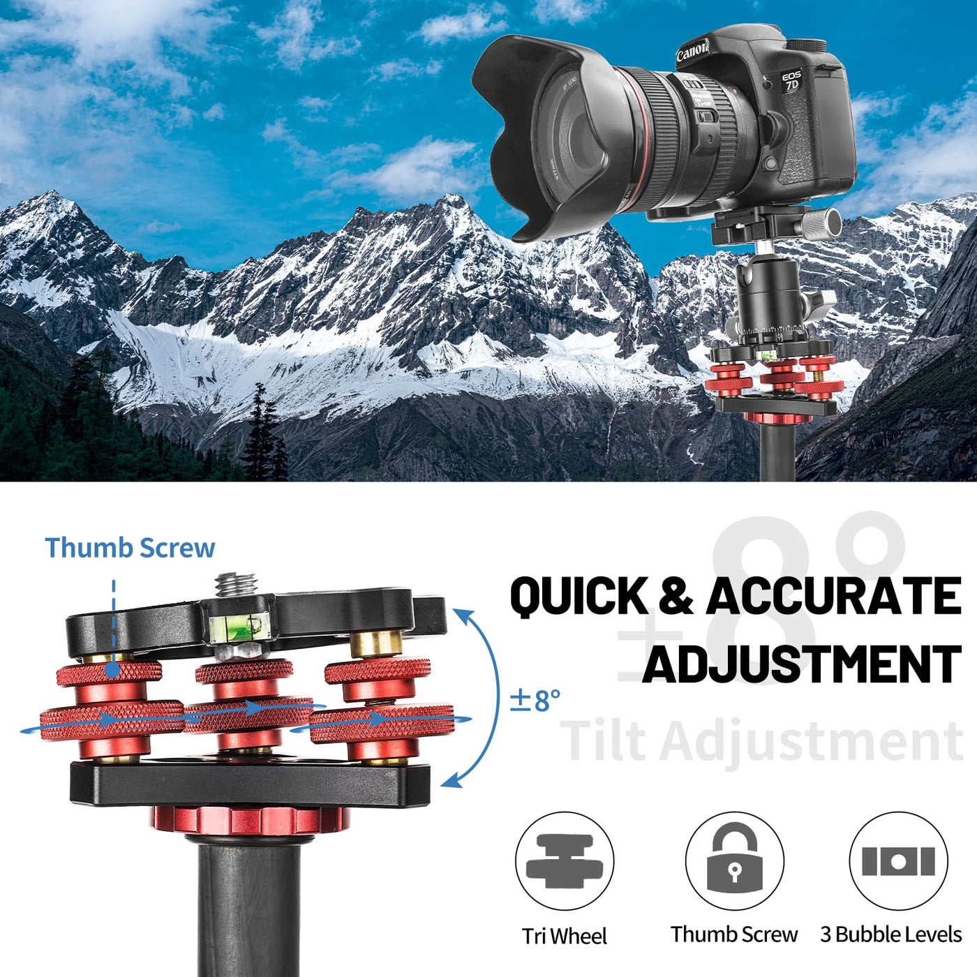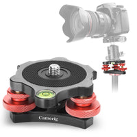 Camerig Tripod Head Leveling Base Camera Leveler, Aircraft Grade Aluminum Alloy 3 Axis Tri Wheel Head, 3/8 Thread, With +/ 5