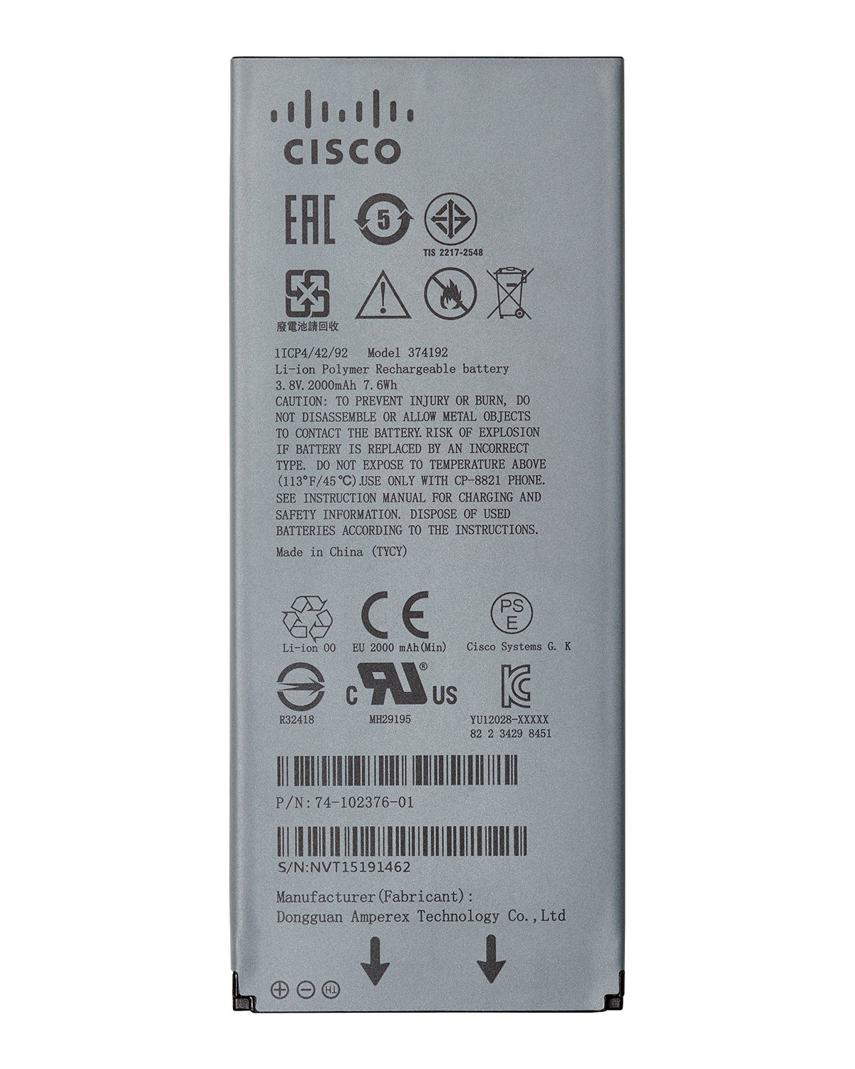 Cisco Replacement Phone Battery Compatible With Ip Phone 8821 - Manufactured By Cisco Genuine Cisco Product.