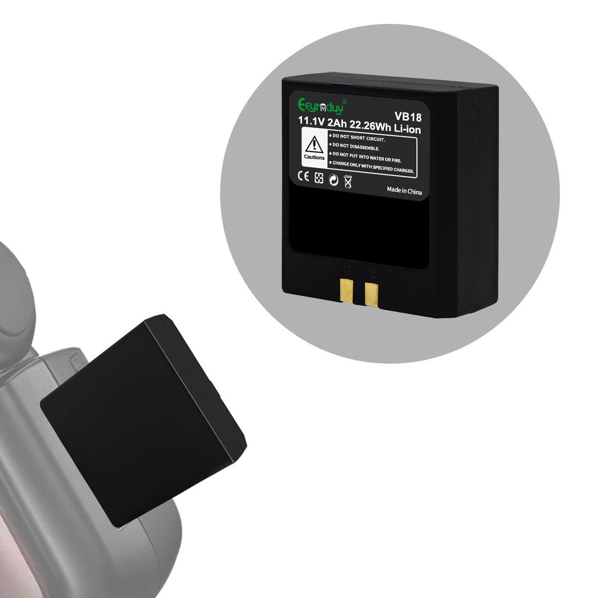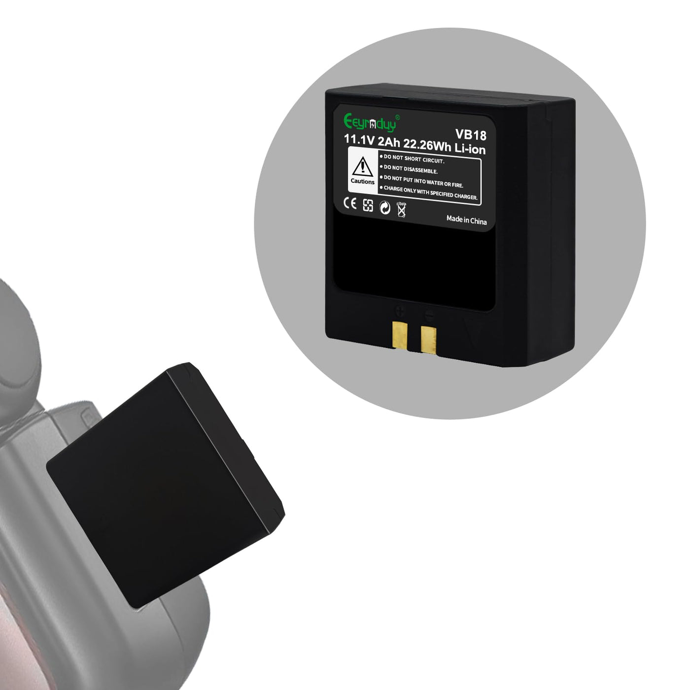 Q: What is the capacity and voltage of the Eeyrnduy VB18 battery?A: The Eeyrnduy VB18 battery has a capacity of 2000mAh and operates at a voltage of 11.1V. This high capacity ensures extended use during photo shoots.