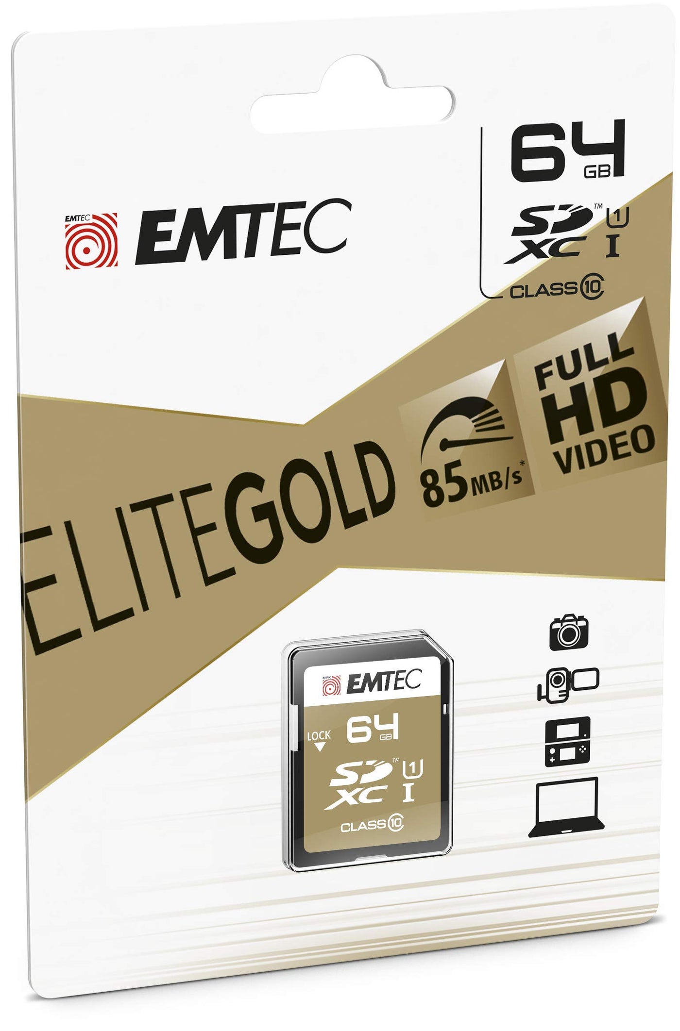Q: What devices are compatible with the Emtec Elite Gold SDHC Class10 UHS-I U1, 64GB?A: The Emtec Elite Gold SDHC Class10 UHS-I U1, 64GB is compatible with all devices that support SDXC standards, including cameras, camcorders, and various other electronic devices.