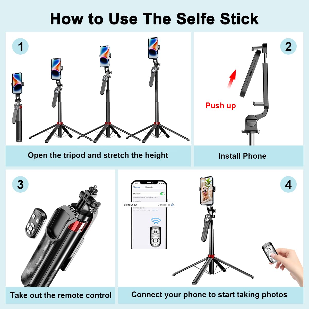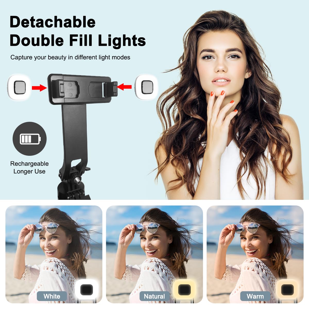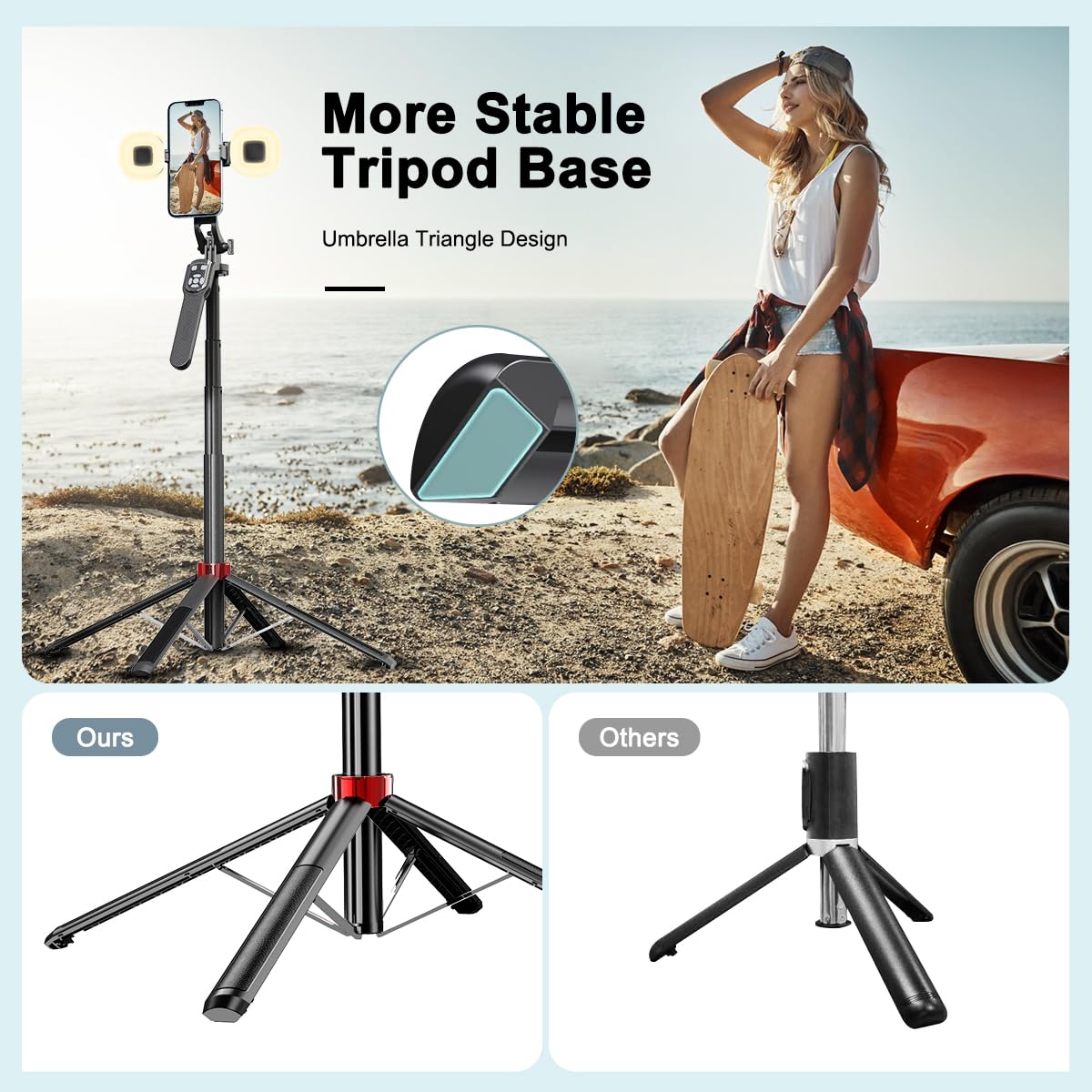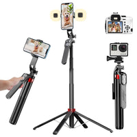Extendable Phone Tripod, 71'' Selfie Stick Phone Vlog Tripod Stand Quadrapod With All In 1 Phone Clip, Travel Tripod Phone Holder With Rechargeable