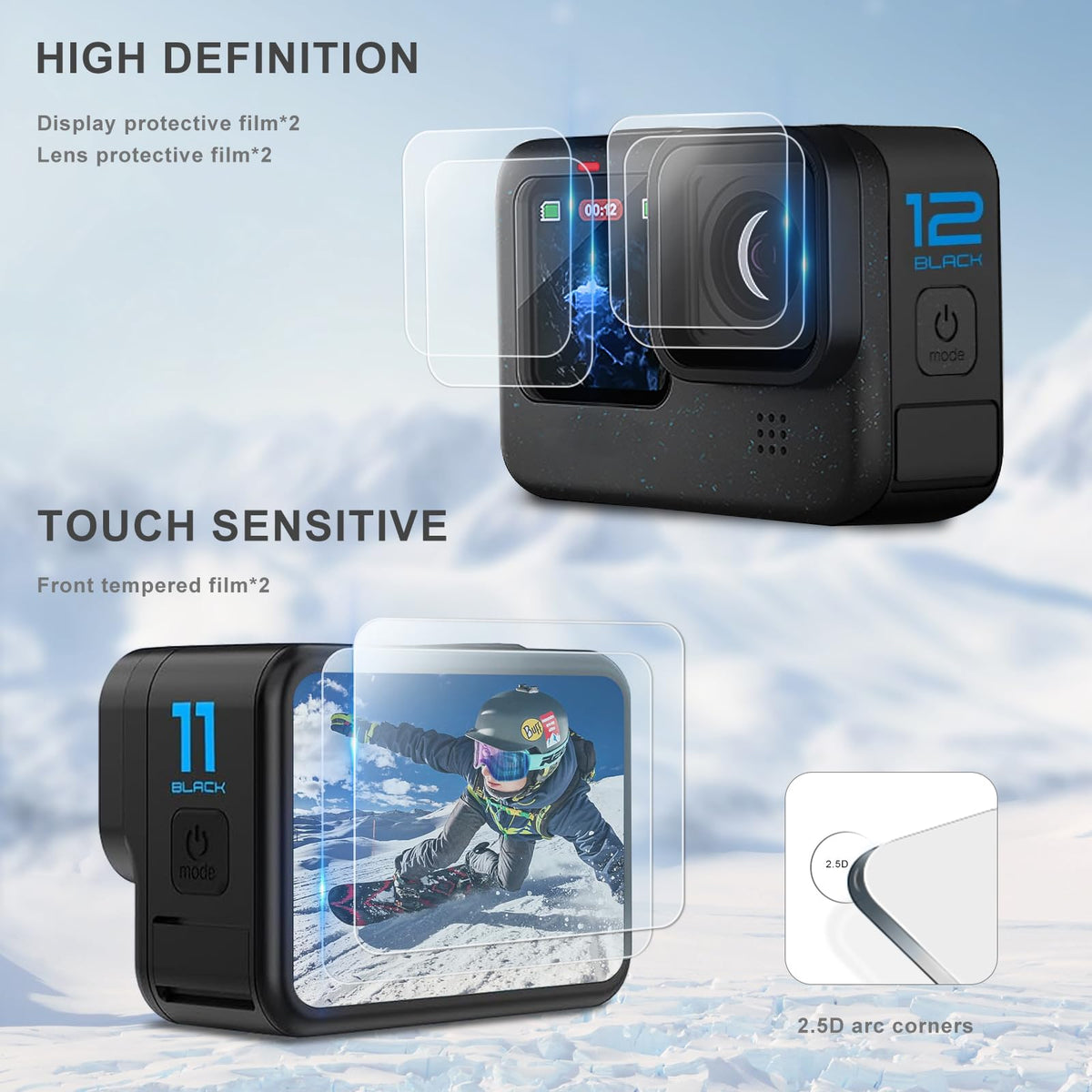 ?Life-Time Warranty? 30-Day Money Back Guarantee, Life-Time Warranty And Friendly 7 X 15 Hours Customer Service. | ?Special Design For Go Pro Hero12/Hero11/Hero10/Hero 9 Black?Premium Silicone Rubber Case + 2-Pack Tempered Glass Lens Screen Protector (Total 6Pcs, Each Pack Includes 2Pcs For Lens, Front Display And Rear Display) Are Specifically Designed For Go Pro Hero 12/Hero 11/Hero 10/Hero 9 Black Action Camera. | ?Full Protection?The Outer Layer Of The Powerful Nano Film Material Which Can Protect Your Lens And Lcd Screen From Smudges, Scratches And Cracks | ?High Definition& High Sensitivity?Premium-Quality Tempered Glass With A Thickness Of Only 0.3Mm Brings Crystal Viewing Experience And Ultra-Low Reflection, Maintains Smooth Touch Screen Experience For Your Go Pro Hero 12/Hero 11/Hero 10/Hero 9 Black. | ?With Lens Cover Provides Fully Protection? Made Improvement Based On Previous Silicone Case, This Silicone Case Designed With A Lens Cover Cap Which Can Be Used Separately, Provides Fully Protection For Your Camera Body And Lens. This Durable Soft Silicone Sleeve Offers Extra Protection Against Dust, Scratches, Finger Prints, Light Shocks And Light Impacts.