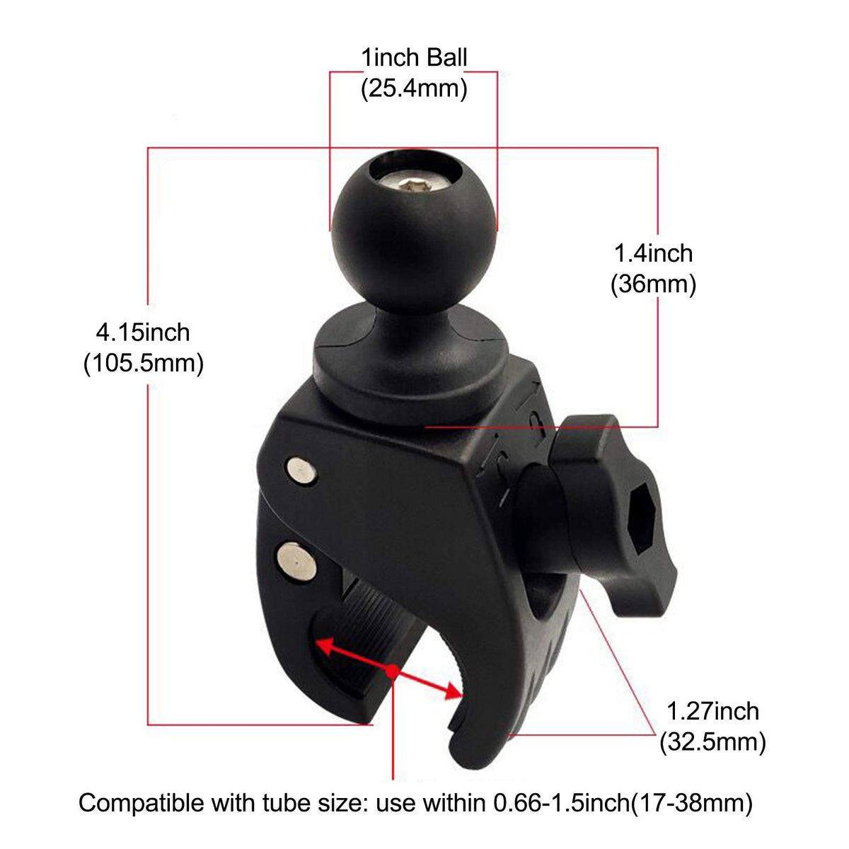 Givubes Tough Clamp Base With 1''Ball Head Made Of High-Strength Composite And Stainless Steel,Designed To Quickly Clamp To Round, Square, And Irregular Rails And Bars In The Most Demanding Environments.Compatible With Tube Size Outer Diameter Is 0.66''-1.5'' (17-38Mm).Includes 1'' Universal Rubber Ball Head, Which Can Be Rotated 360 To Adjust The Angle According To The Needs Of The Mounts Or Tube.Rubber Pads Provide Stable Gripping And Protection Of Mounting Surface,Durable And Non-Slip Without Any Problems Of Movement.Ideal Mounting Base For Phones, Tablets, Cameras, Rod Stands,Etc..