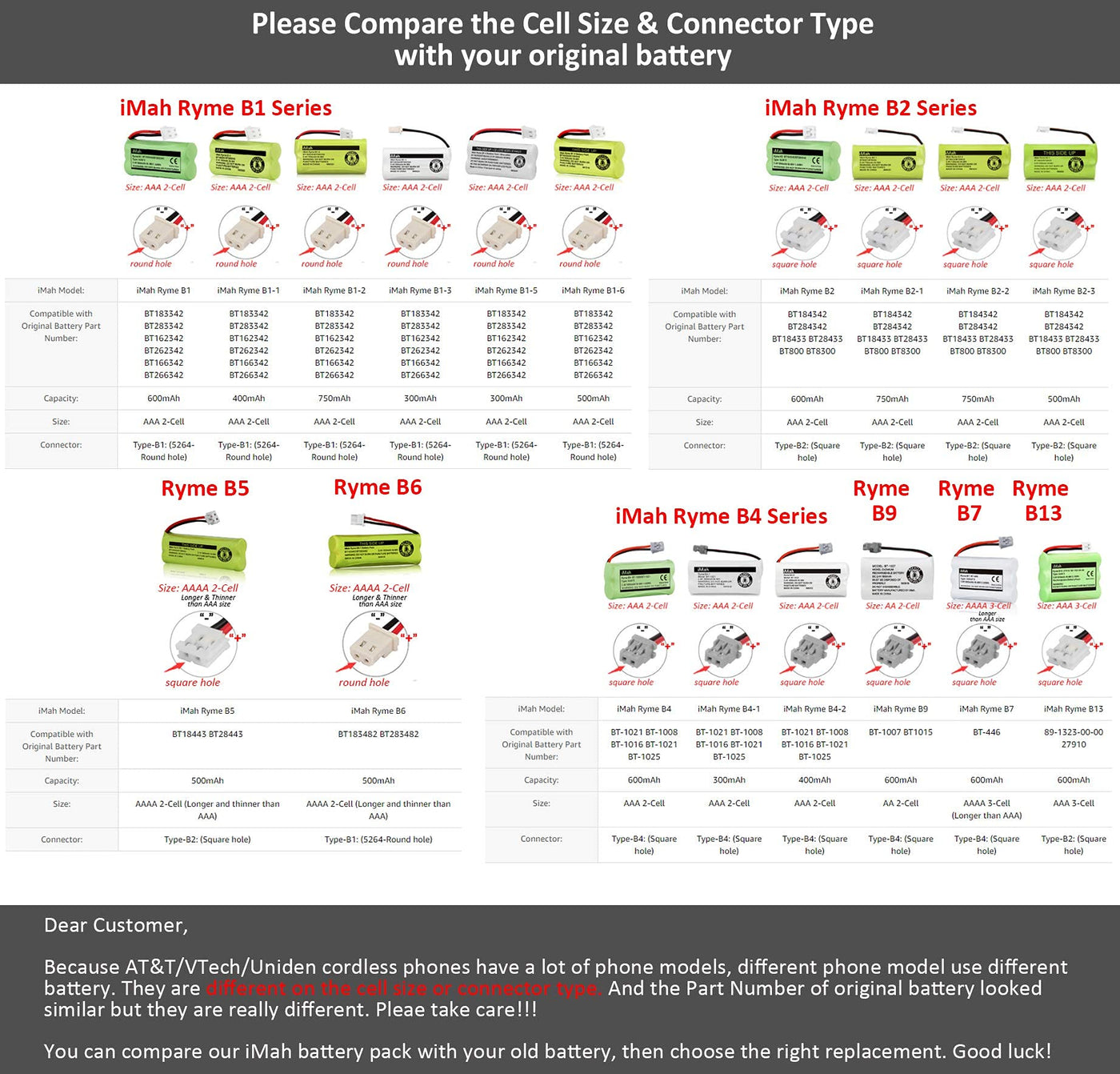 Imah Bt18433/Bt28433 2.4V 500Mah Ni Mh Cordless Phone Battery, Also Compatible With At&T Bt184342/Bt284342 Bt8300 Bt1011 Bt1018