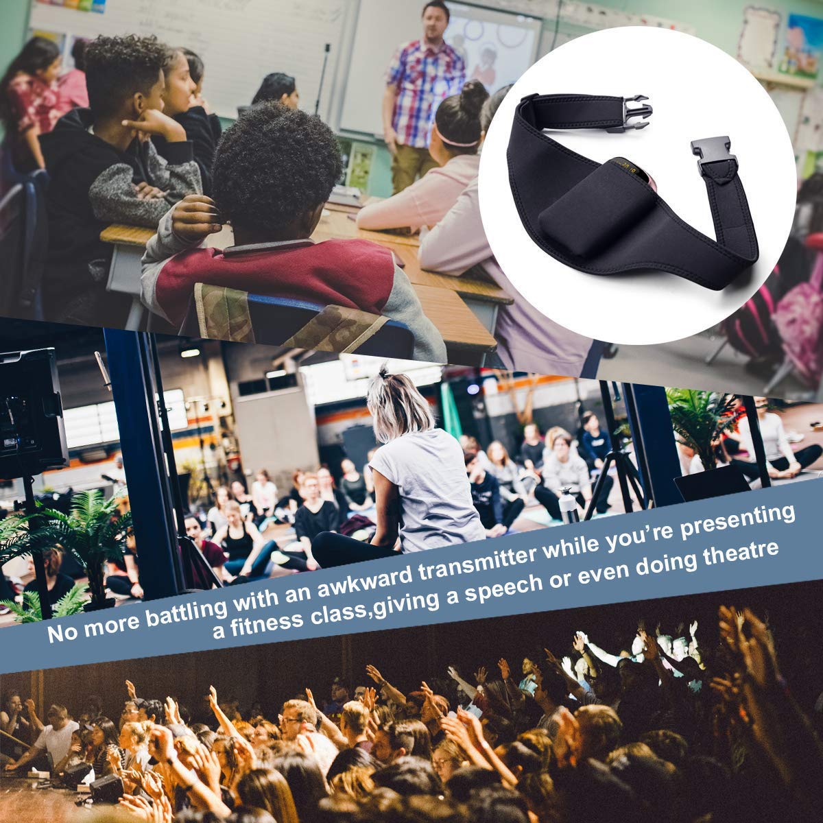 ?Our Mic Belt?: ? Color: Black (Machine Washable) ? Material: Pressure Resistant & Wear Resistant ? Suitable For Most Microphone Transmitters ?Stop The Hassle?: While Youre Presenting A Fitness Class, Giving A Speech Or Even Doing Theatre. ? No More Battling With An Awkward Transmitter. ? No More Tugging At An Uncomfortable, Ill-Fitting Belt. ? This Soft And Lightweight Belt Stays In Place. ?Note?: ?All Dimensions Are Measured Manually And There May Be Small Deviations. ?If You Have Any Quality Problems, You Can Contact Our Customer Service, We Will Re-Shipment For You Or Refund Your Money.