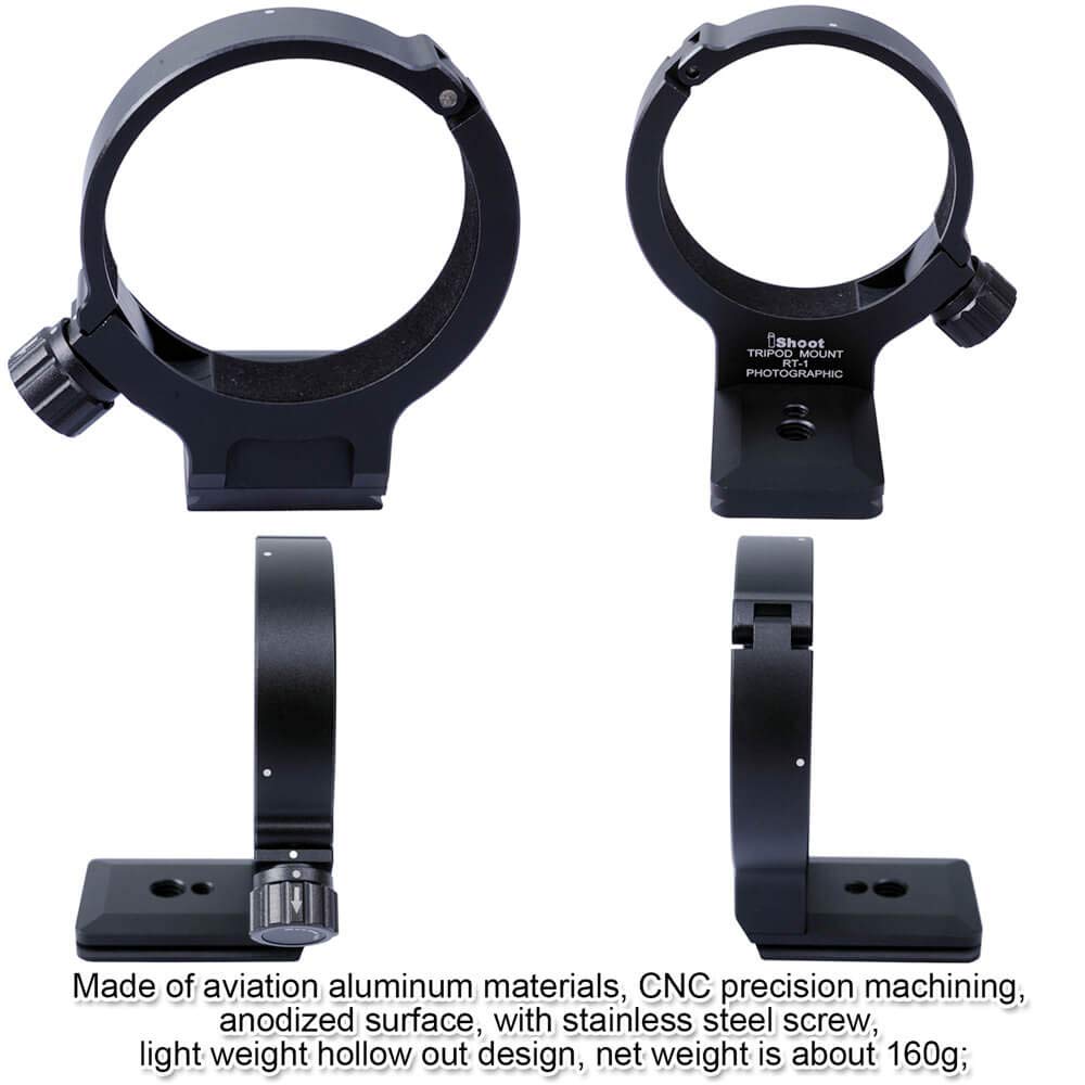 Ishoot&Nbsp;Improved 68Mm&Nbsp;Lens Collar Tripod Mount Ring For&Nbsp;Nikon Af-S 300Mm F/4E Pf Ed Vr&Nbsp;And Nikon&Nbsp;Af-S 70-200Mm F/4G Ed Vr Lens, With&Nbsp;Arca-Swiss Fit Quick Release Plate For Arca Type Tripod Ball Head Main Features:&Nbsp; 1.&Nbsp; This Lens Collar Is Made Of Aviation Aluminum, Cnc Precisely Machined, Hollow-Out Weight Reduction Design, Surface Anodized, With Stainless Steel Screw;&Nbsp;Net Weight Is About 160G; 2.&Nbsp; The Lens Bracket&Nbsp;Is Referencing To And Modified From Nikon Original Standard Design, Structure Is Enhanced, Details Are Improved, And Add The Function Of Quick Release Plate, More Practical; 3.&Nbsp; Inner Diameter Is About 68Mm, Using Embedded Flocking To Increase Contact Surface; With Three Marks, Convenient For Lens Rotation And Alignment; Fast Spring Lock, Convenient For Quick Assembly And Disassembly Or Adjust Camera Body For Composition; Removable Quick Release Plate Structure, Reserved 1/4&Quot; And 3/8 &Quot; Screw Holes; 4.&Nbsp; Bottom&Nbsp;Is 39Mm Arca-Swiss Fit Quick Release Plate, Compatible With Rrs / Arca-Swiss / Kirk / Wimberley / Markins / Sunwayfoto / Kangrinpoche / Benro / Sirui / Marsace / Ishoot Tripod Ball Head Of Arca 39Mm Fit; Suitable For Ishoot Is-Jz30 / Is-Jz50 / Is- Jz64 / Is-Qj58 / Is-Qj64 / Is-Jz60Bk / Is-Jz70Mft / Is-Jz80Bk Clamp. Suitable For: Nikon Af-S 300Mm F/4E Pf Ed Vr Lens Nikon&Nbsp;Af-S 70-200Mm F/4G Ed Vr Lens Package Includes:&Nbsp; 1 X Ishoot Tripod Mount Ring&Nbsp;Is-Rt1 Note:&Nbsp;The Other Items In The Photos Not Listed Here Are For Illustrating Only, Not Included