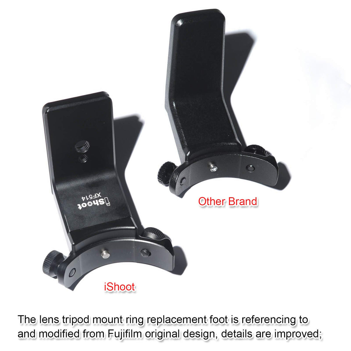 Metal Tripod Mount Ring Stand Replacement Base Foot Is-Xf514 For Fuji Xf 50-140Mm F2.8 R Lm Ois Wr Telephoto Lens Bottom With Rrs/Arca-Swiss Fit Quick Release Plate Feature, Compatible With Ball Head Of Rrs / Arca-Swiss / Kirk Fit Main Features: 1. Specially Designed For Fuji Xf 50-140Mm F2.8 R Lm Ois Wr Telephoto Lens; Referring To And Modified From Fuji Original Design, Details Are Improved; Bottom Added The Feature Of Quick Release Plate Of 65Mm Long, Reserved With 1/4 And 3/8 Screw Hole, More Practical; 2. Made Of Aviation Aluminum, Cnc Precisely Machined, Anodized Surface, With Stainless Steel Non-Slip Locking Screws And Anti-Skid Nails; The Volume Is About 66 X 52 X 65Cm, Net Weight Is About 105G; 3. Bottom Is Rrs / Arca-Swiss Fit Quick Release Plate Feature, Compatible With Rrs / Arca-Swiss / Kirk / Wimberley / Markins / Sunwayfoto / Kangrinpoche / Benro / Sirui / Marsace / Ishoot Standard Ball Head, Suitable For Is-Jz30 / Is-Jz50 / Is-Jz64 / Is-Qj58 / Is-Qj64 / Is-Jz60Bk / Is-70Bk / Is-Jz80Bk Etc. Package Includes: 1 X Metal Tripod Mount Ring Replacement Base Is-Xf514 For Fuji Xf 50-140Mm F2.8 R Lm Ois Wr Telephoto Lens (Note: The Other Items In The Photos Not Listed Here Are For Illustrating Only, Not Included)