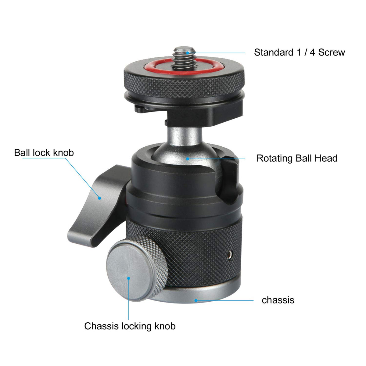 Mini Ball Head With 1/4' Hotshoe Mount Adapter 360 Degree Rotatable Aluminum Tripod Head For Dslr Cameras Htc Vive Tripods Monopods Camcorder Light Stand Asin: B08Byvk52C 1 Pack Red Max Load Is 3Kg (6.6Lbs)