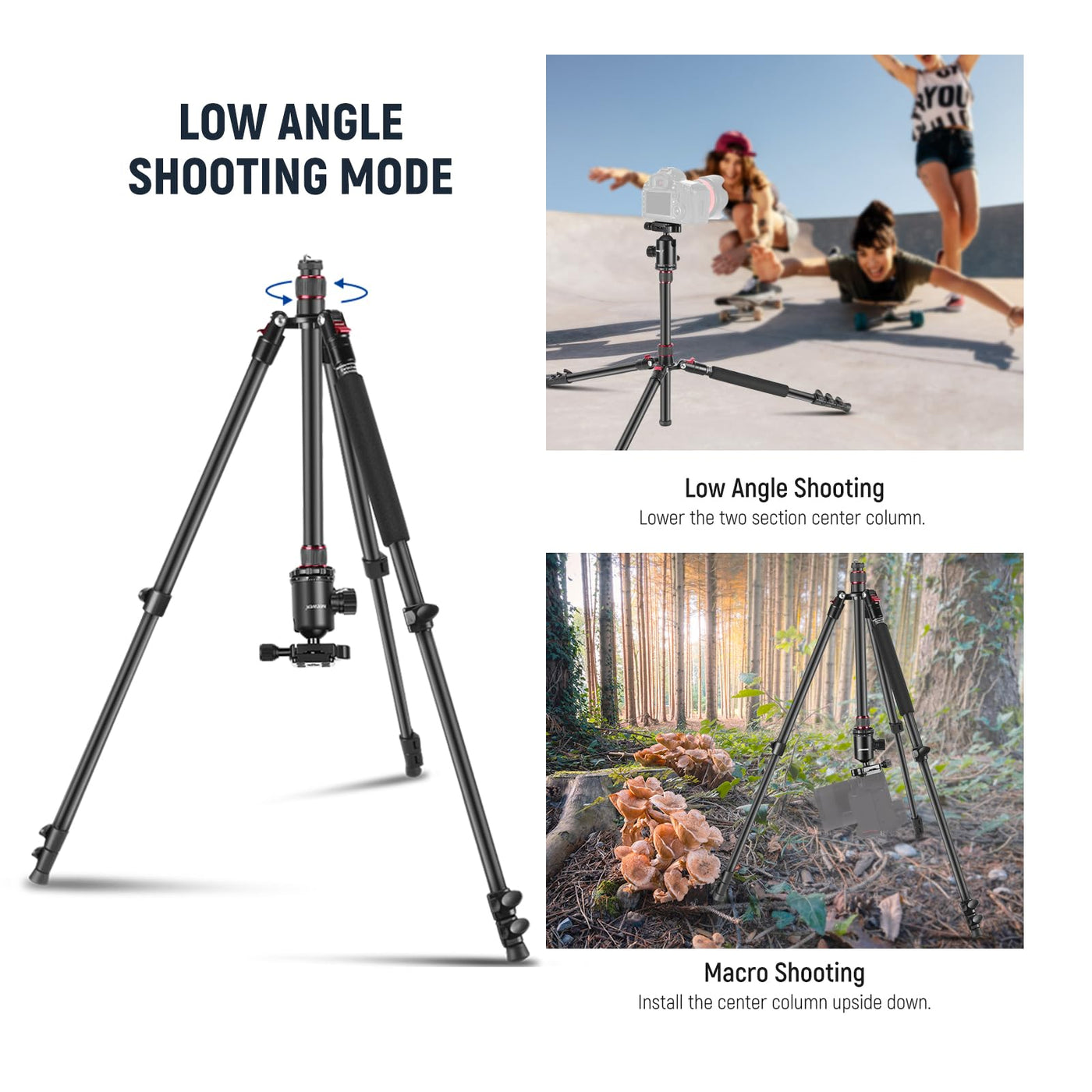 Neewer 77 Camera Tripod Monopod With Phone Holder, Portable Travel Tripod With Remote, 360 Ball Head, 2 Axis Center Column, A