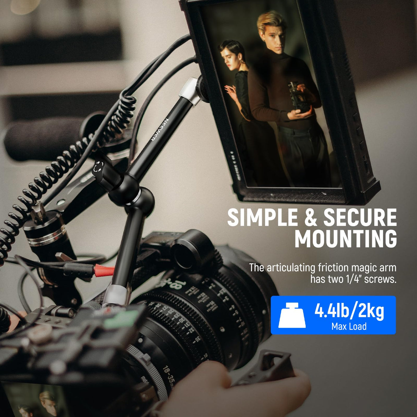 Neewer 9.8''/25Cm Adjustable Friction Magic Arm With 1/4'' Screw On Both Ends, Compatible With Smallrig Cage, Flash/Led Light/Mi