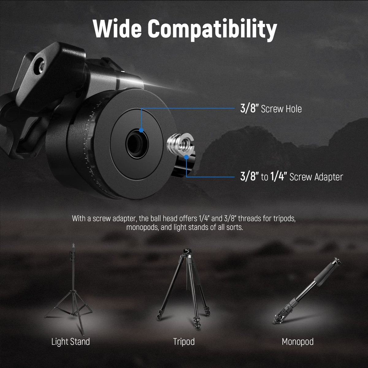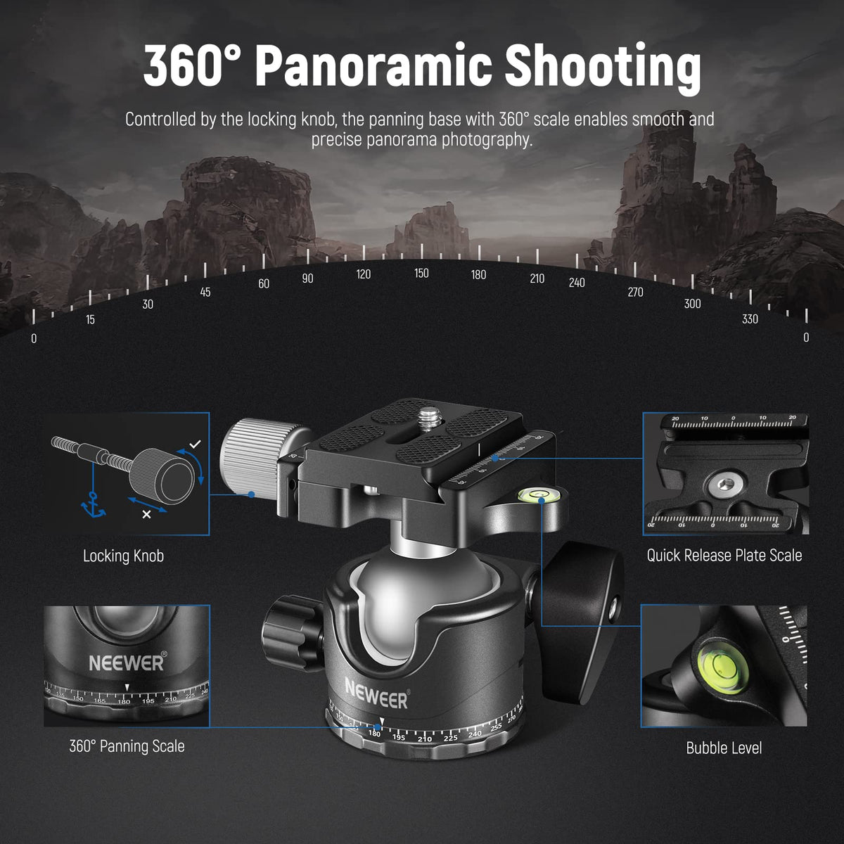 Neewer Low Profile Camera Tripod Ball Head, 36Mm Metal Panorama Ball Head Compatible With Arca 1/4 Quick Release Plate For Tr