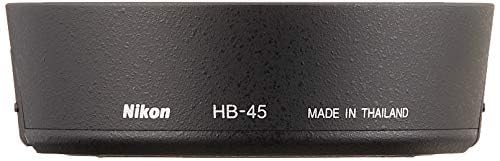Q: What is the material of the Nikon HB-45 lens hood?A: The Nikon HB-45 Bayonet Lens Hood is constructed from durable materials that help protect the front lens element from scratches and damage while also minimizing lens flare.