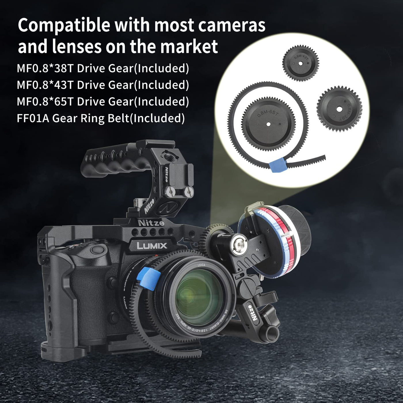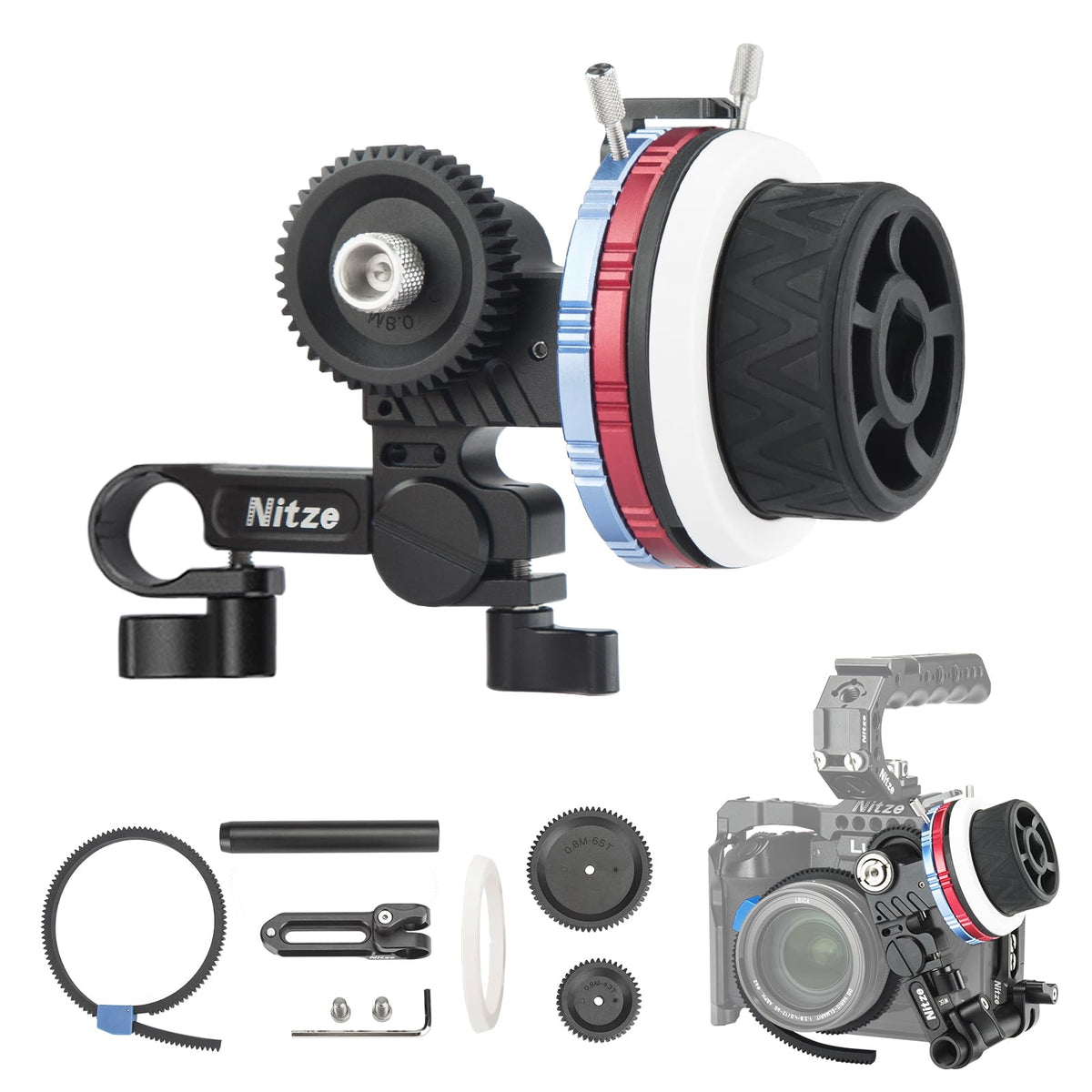 Nitze Mini Follow Focus Kit With 3 Reversible Drive Gears, 2 Marking Disks, Gear Ring Belt, 15Mm Rod And 15Mm Rod Clamp With Nat