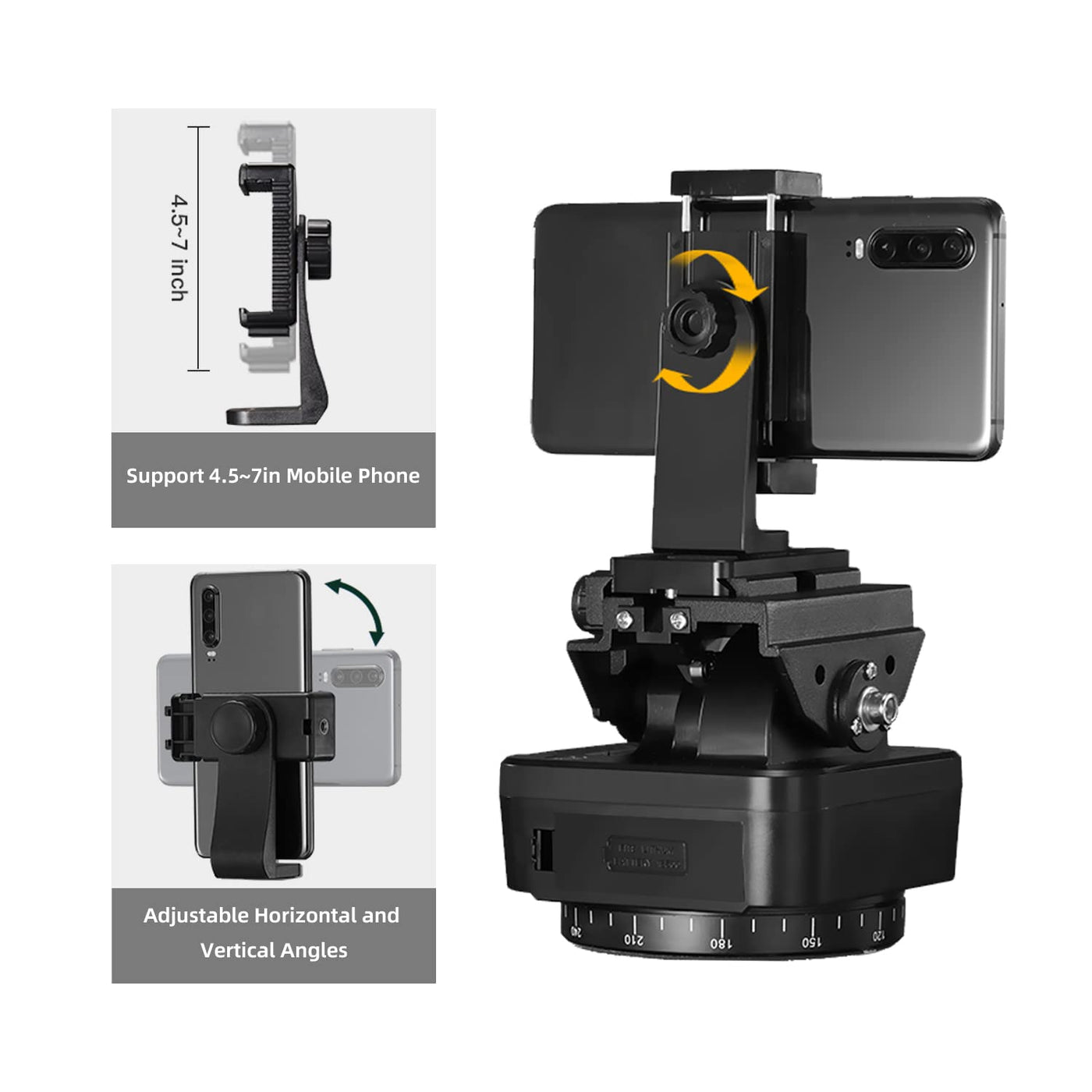Olycelotti Pan Tilt Camera Mount, Motorized Tripod Head With Remote Control And Mobile Phone Clip For Dslr Cameras, Smartphones,