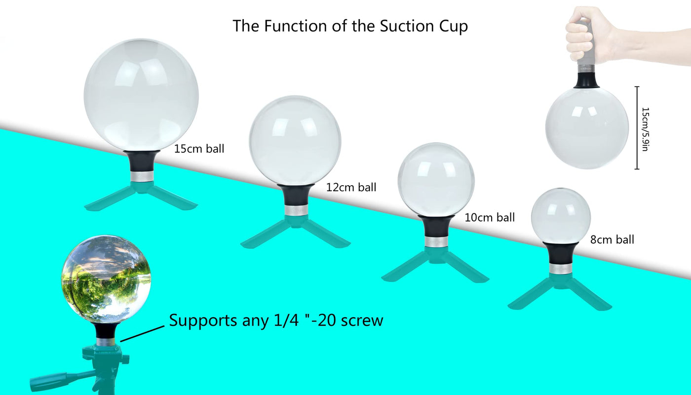 Omylens Lens Ball With Mount, K9 Crystal Ball (80Mm) + Suction Mount Cup + Flat Base (1/4'' 20 General Internal Thread) + Silk B