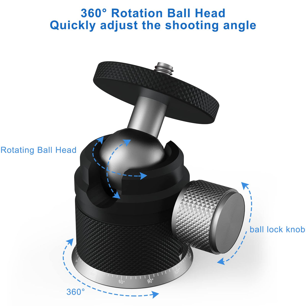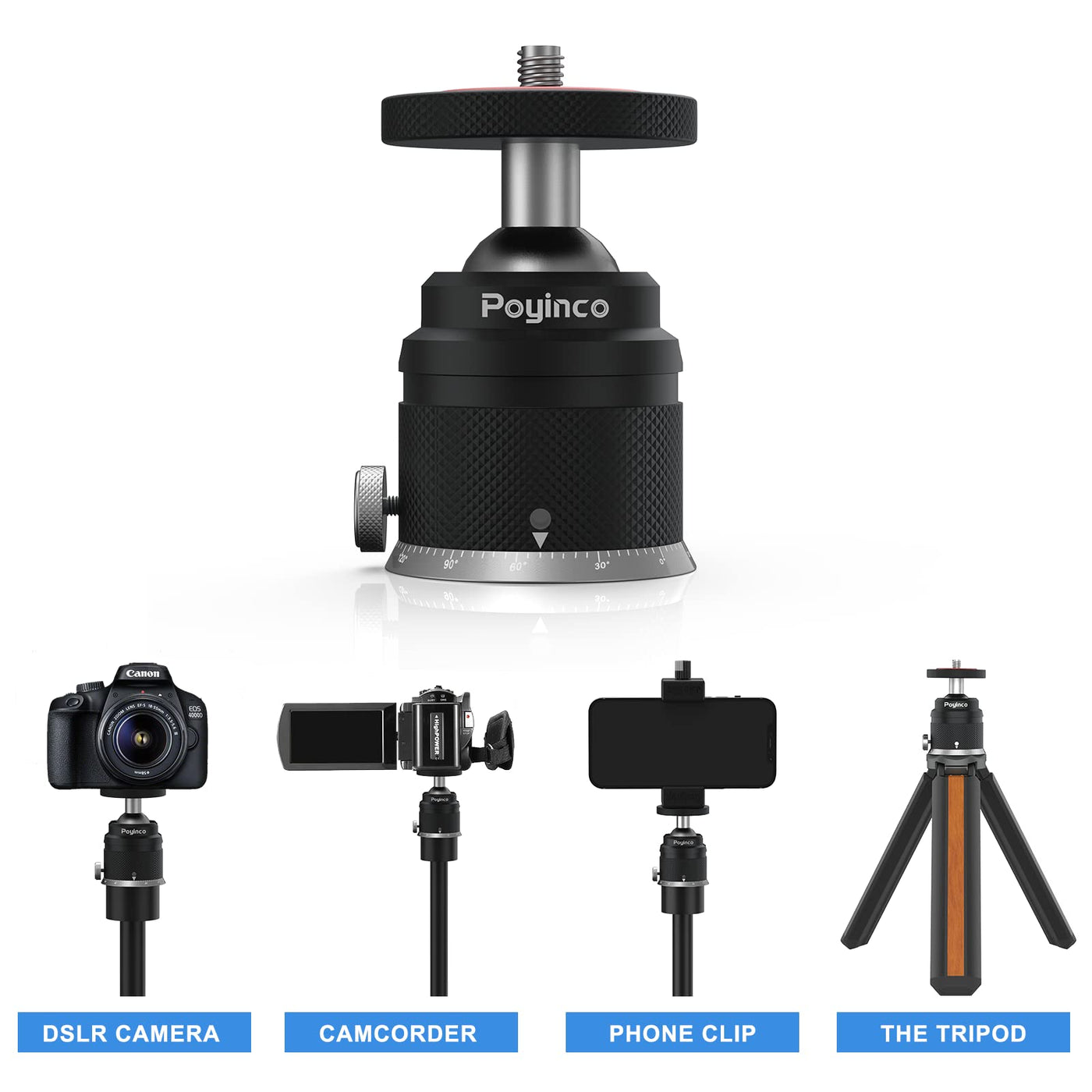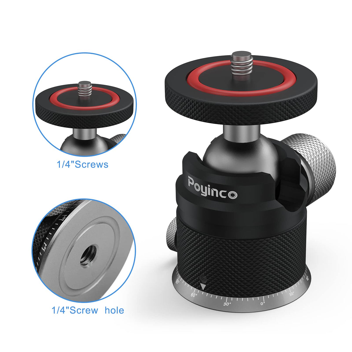 Poyinco Camera Tripod Mini Ball Head With 1/4' Hotshoe Mount Adapter 360 Degree Rotatable Aluminum Tripod Head For Monopod Dslr Cameras Phone Gopro Max Load 6.6Lbs/3Kg