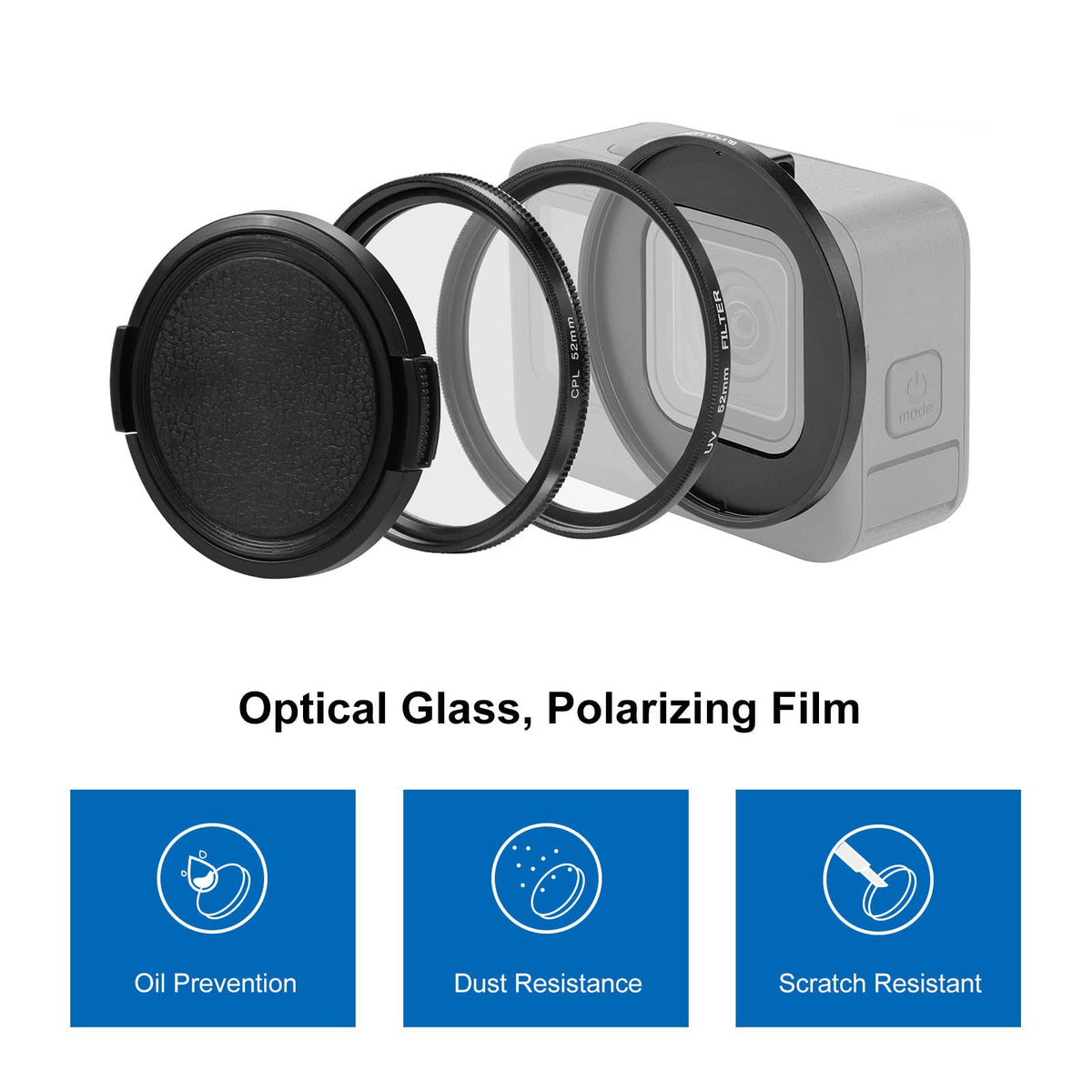 Puluz 52Mm Uv + Cpl Lens Filter Adapter Ring For Gopro Hero11 Black / Hero11 Black Mini / Hero10 Black / Hero9 Black Camera Lens Adapter Ring Camera Filter Accessories