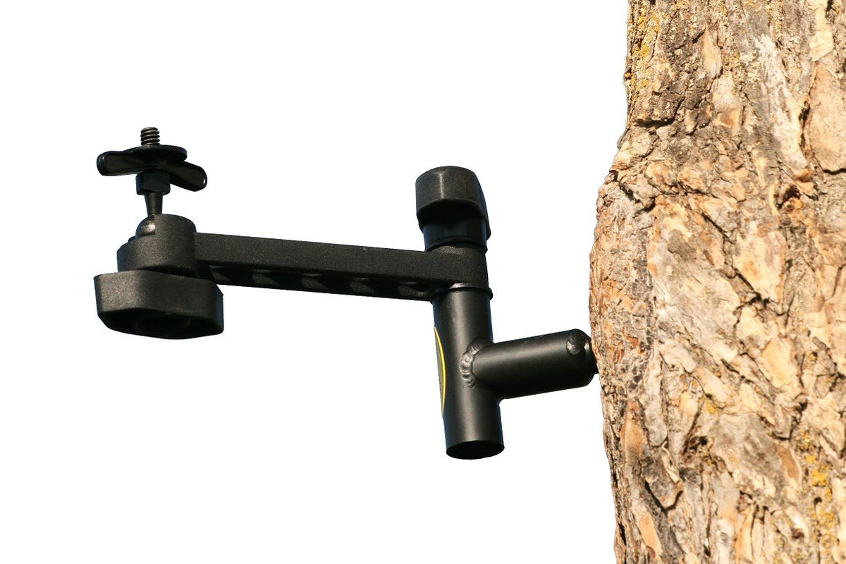 Q: What materials is the Slate River EZ Aim Game Camera Mount made from?A: The EZ Aim Game Camera Mount is constructed from durable plastic, ensuring longevity and stability during outdoor use.