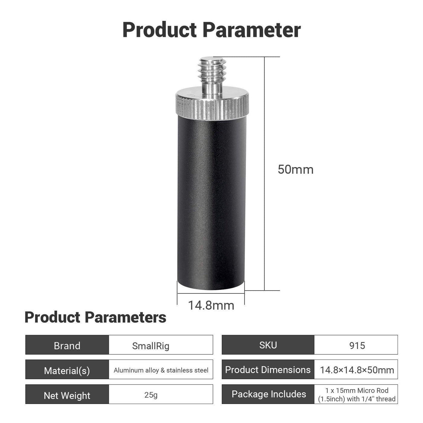 Smallrig Standard 15Mm Micro Rod 1.5 Inches Long With 1/4'' Male Female Thread For Clamp Mount 915