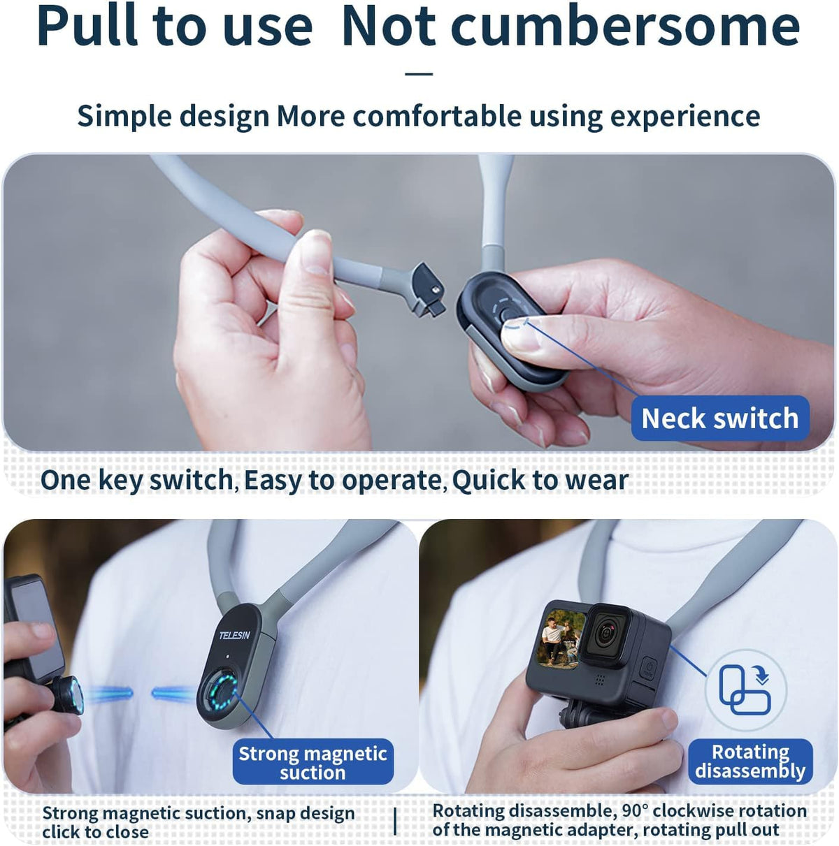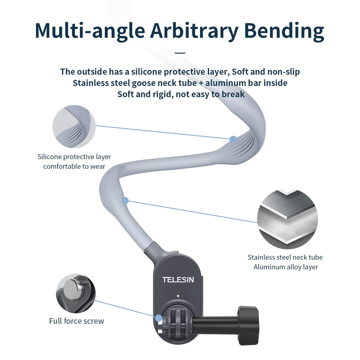 Telesin� Plus Magnetic Neck Mount For Go Pro Phone Holder, Quick Release Pov Video Vlog Flexible Angle Necklace Holder For Gopro Hero 13 12 11 10 9 Insta360 X3 X4 Dji Action 3 4 5 Pro Iphone Android