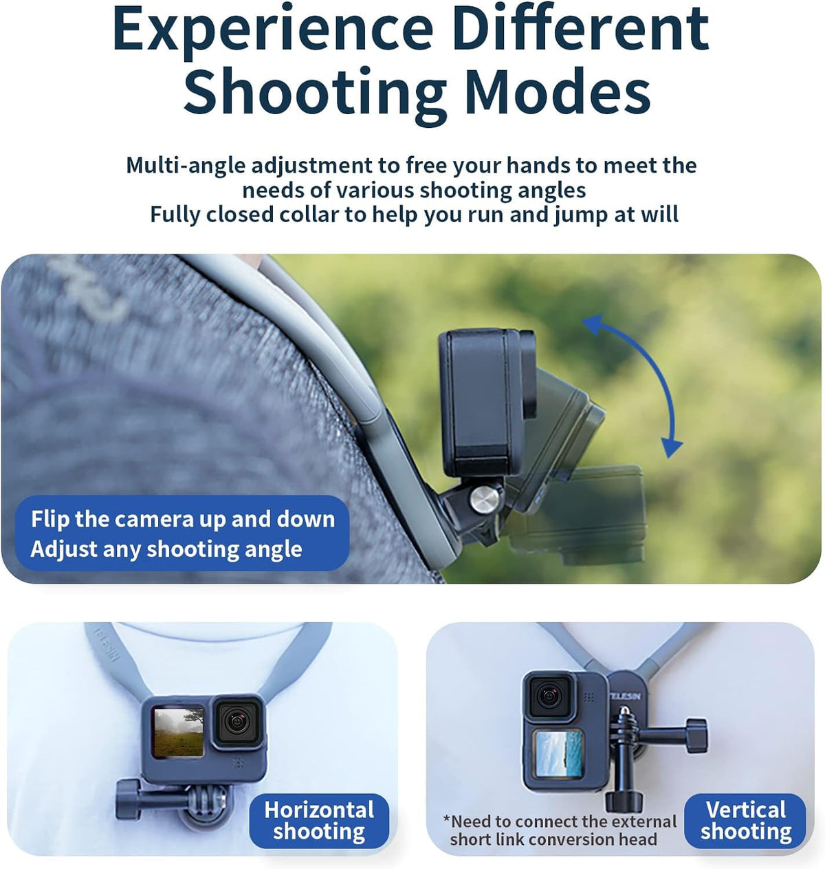 Telesin Long Designed Neck Holder Is Approximately 26 Inches/66 Centimeters When Fully Extended, You Will Not Feel Tightened While Wearing. Only 0.4 Lbs Super Lightweight, Portable And Comfortable Both For Indoor And Outdoor Activities Use.