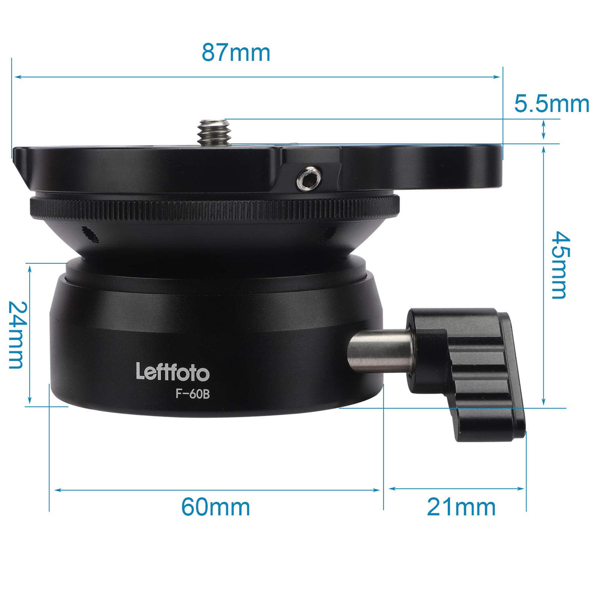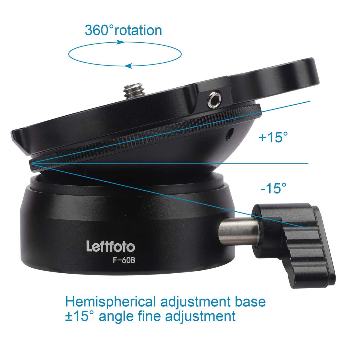 Brilliantly Functional Such As Use It Between A Tripod And A Telephoto Telephoto Lens ,Large Format Camera - Very Speedy Way To Set Up The Tripod On Any Surface And Quickly Guarantee The 3-Way Head Is Level,For Astrophotography Polar Alignment.Photographic Splice Using It To Mount For Filming Hs Sports, Basketball &Amp; Lacrosse, Indoor And Outdoors Using Tripod. It For Panning And It Works Excellent For That. Quick And Easy Way To Get Your Camera Level.Bubble Level Is Generously Large And Accurate. Brand: Leftfoto Model:Lf-60B Material: High Quality Aluminum Alloy Color: Black Matte Ball Diameter:87Mm Base Diameter:60Mm Maximum Load: 10Kg Weight: 273Grams Screw: 1/4 Inch, Bottom Screw Hole 3/8 Inch