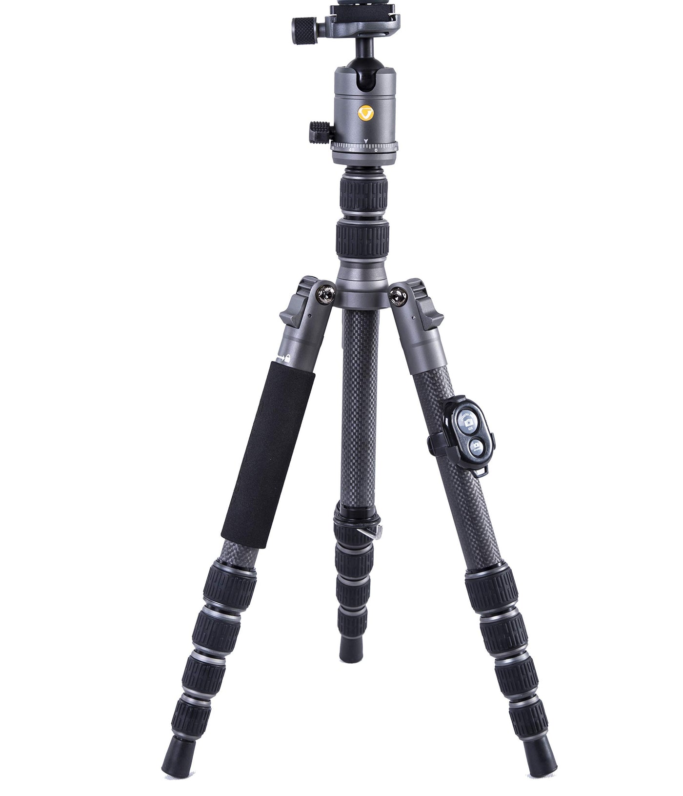 Vanguard Veo3Go265Hcb Compact Carbon Fiber Travel Tripod With Ball Head, Monopod Option, Smart Phone Holder And Bluetooth Remote