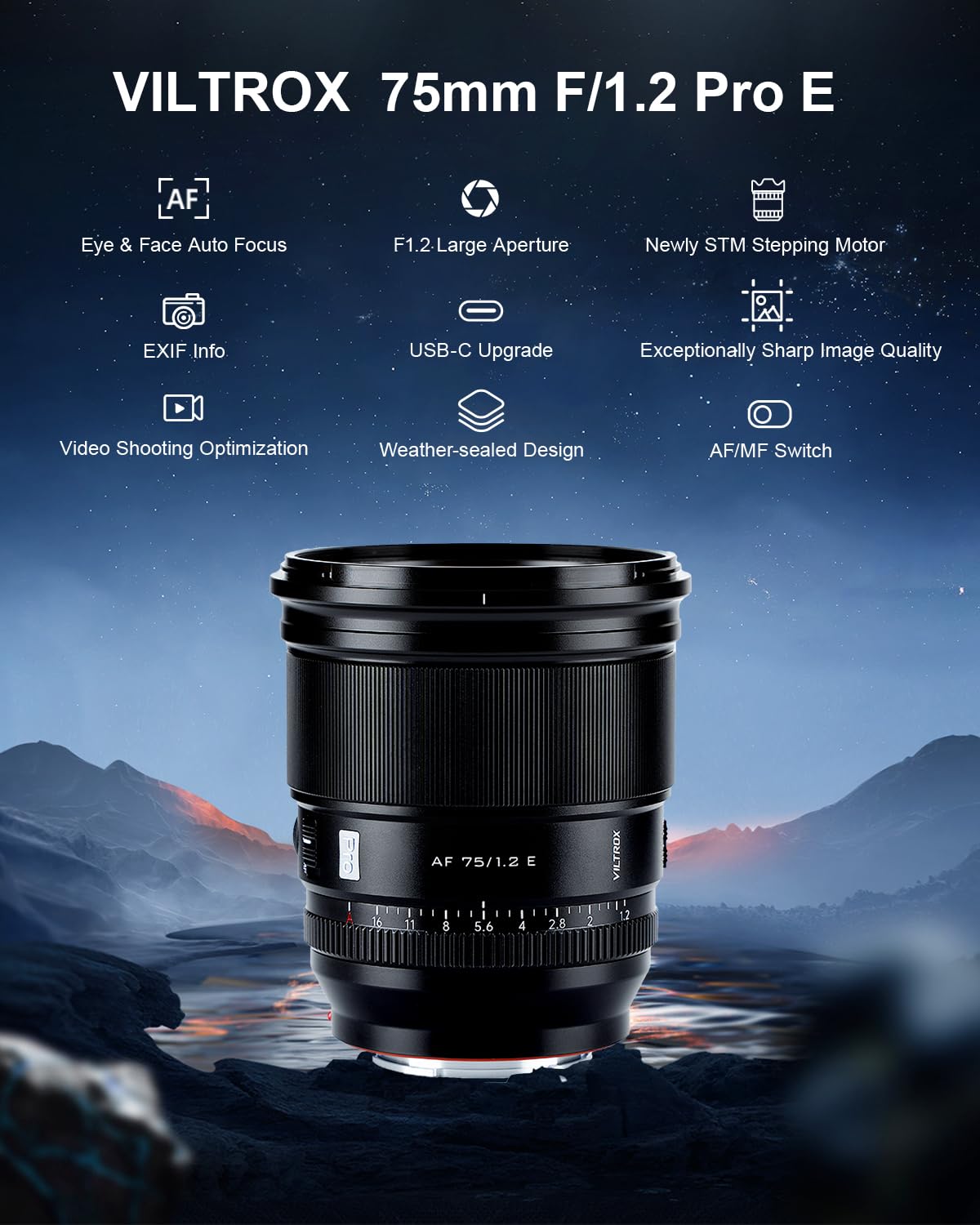Viltrox 75Mm F/1.2 F1.2 Pro E Lens Aps C Auto Focus Ultra Wide Angle Prime Lens Compatible With Sony E Mount Mirrorless Cameras