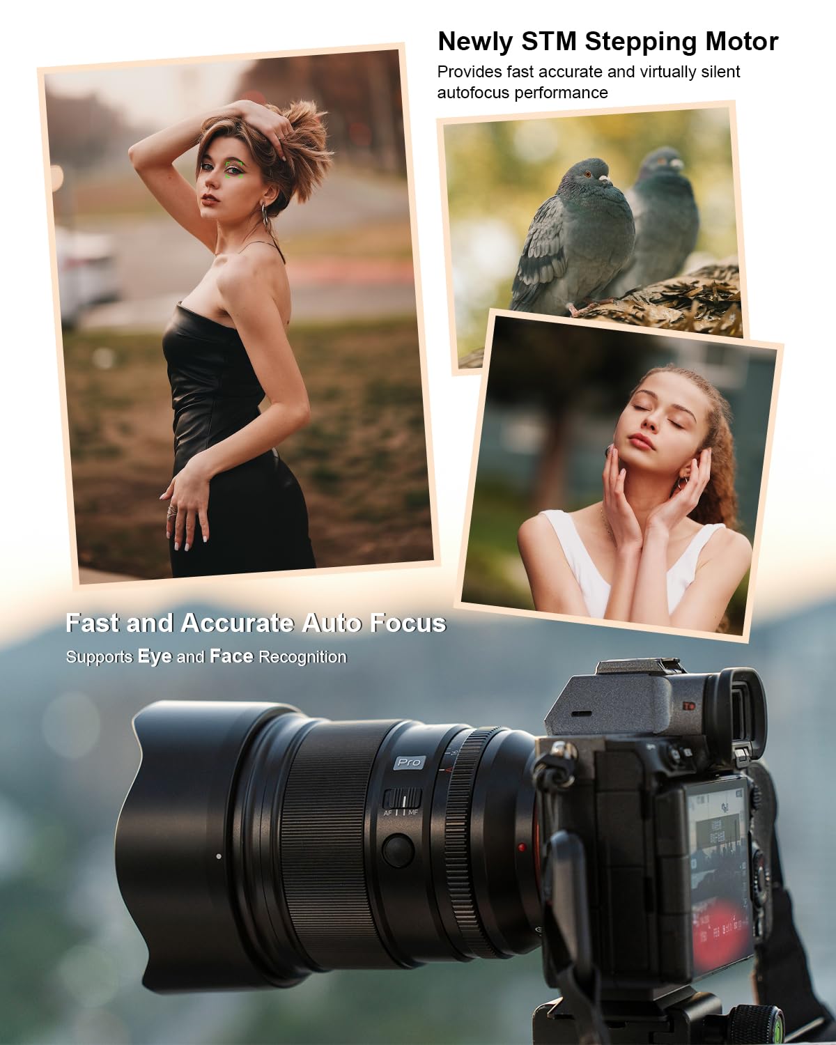 Q: How does the autofocus system work on this lens?A: This lens features a fast and precise autofocus system powered by the latest STM stepper motor technology. It supports various autofocus modes, including eye and face detection, ensuring accurate focus on subjects.