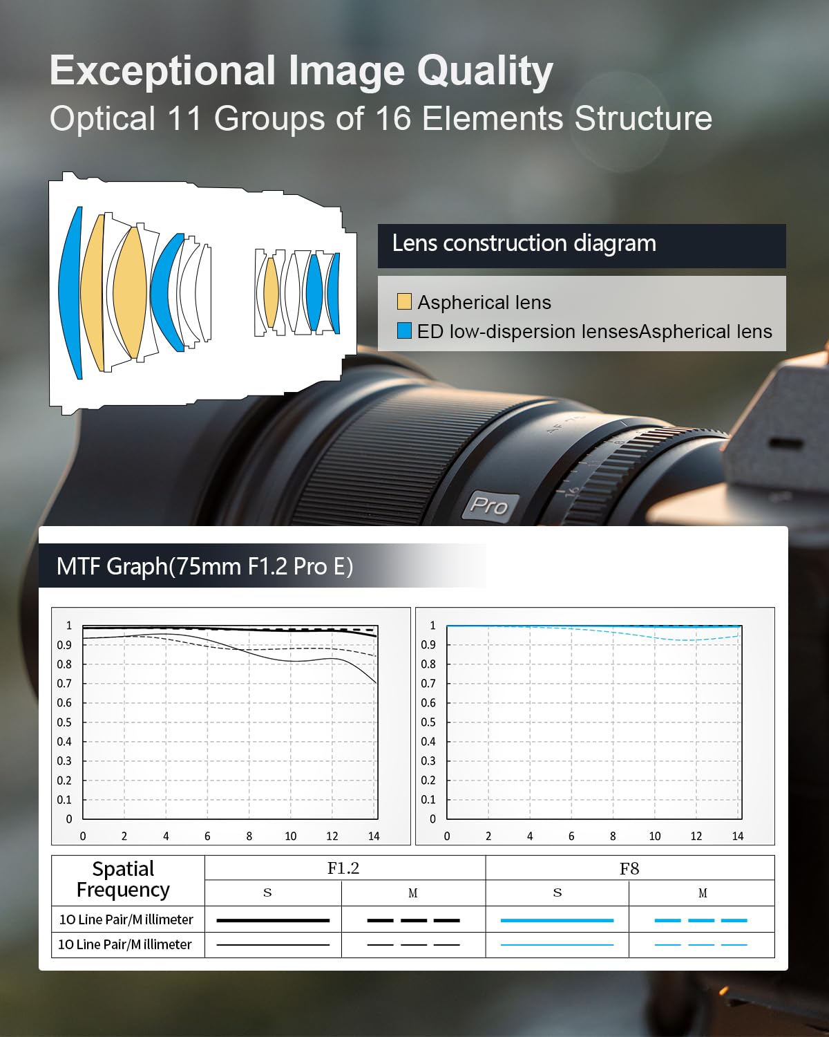 Q: What is the advantage of the f/1.2 aperture in this lens?A: The f/1.2 super large aperture allows for excellent performance in low light conditions, enabling higher shutter speeds and lower ISO settings. This results in sharper images with beautiful background bokeh.