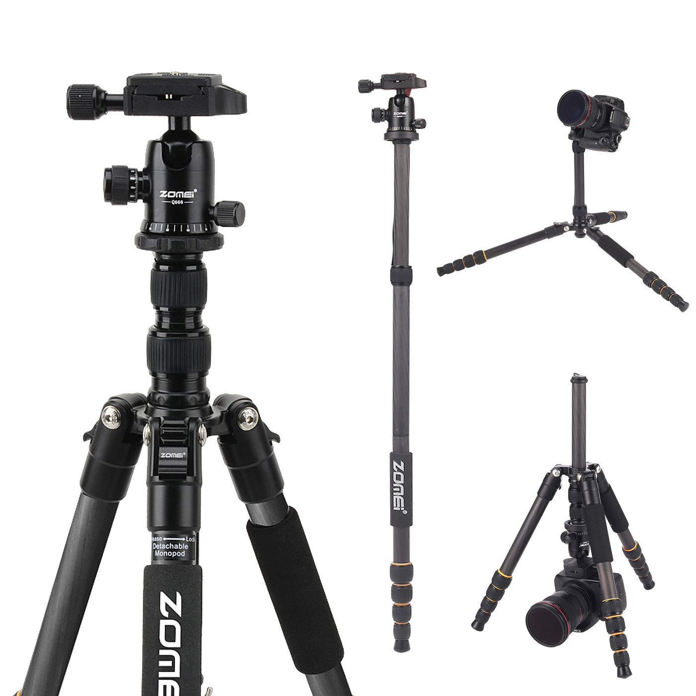 Zomei Q666C Carbon Fiber Tripod Monopod Lightweight Travel With Ball Head Compact For Canon Sony, Nikon, Samsung, Panasonic, Olympus, Kodak, Fuji, Cameras And Video Camera Zomei Carbon Fiber Tripod Is Ideal For Both Indoor And Outdoor Photography. It Is Perfect For Events, Sports Activities, Capturing That One Amazing Shot. Please Note: For Camera With Telephoto Zoom Lens, We Recommend You Buy A Tripod Mount Ring For Better Balance. Column Hook Allows You To Hang Additional Weight To Increase Stability.Features: The Tripod Legs Can Be Inverted And Folded Back 180, Giving It A Compact Size Of 17.3''. Carry Bag With Shoulder Strap Included, Excellent For Travel. Specification: Type : Carbon Fiber Tripod Modle : Q666C Net Weight : 3.1 Pounds Loading Capacity : 26.4 Poundsmaximum Height :61'' / 155Cm Minimum Height:20.4'' / 51.8Cmfolded Height:14.5'' / 36.8Cmpackage Contents : 1X Zomei Q666C Tripod 1X Quick Release Plate 1X Carrying Bag 1X User Manual