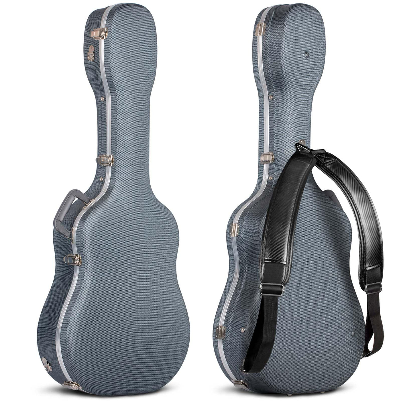 Cahaya 41 Inch Hard Acoustic Guitar Case Abs Waterproof Guitar Bag 0.6 Inch Thick Padding For Acoustic Classical Guitars, Black