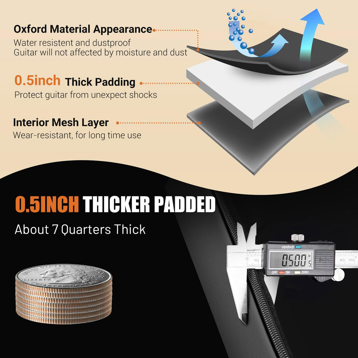Cahaya Acoustic Guitar Bag For 42 43 44In Guitars 0.5In Thick Padding Guitar Case Gig Bag Soft With Adjustable Shoulder Straps And Back Handle Cy0346