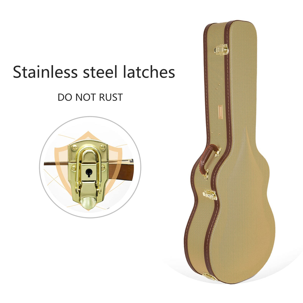 Designed For 12-Fret 00 Style Acoustic Guitarsinterior Dimensions:Overall Length: 108 Cm (42.5)Upper Bout: 27 Cm (10.6)Waist: 24 Cm (9.4)Lower Bout: 37.5 Cm (14.7)Body Depth:11 Cm (4.3)Please Check The Interior Dimensions Before Purchasing.