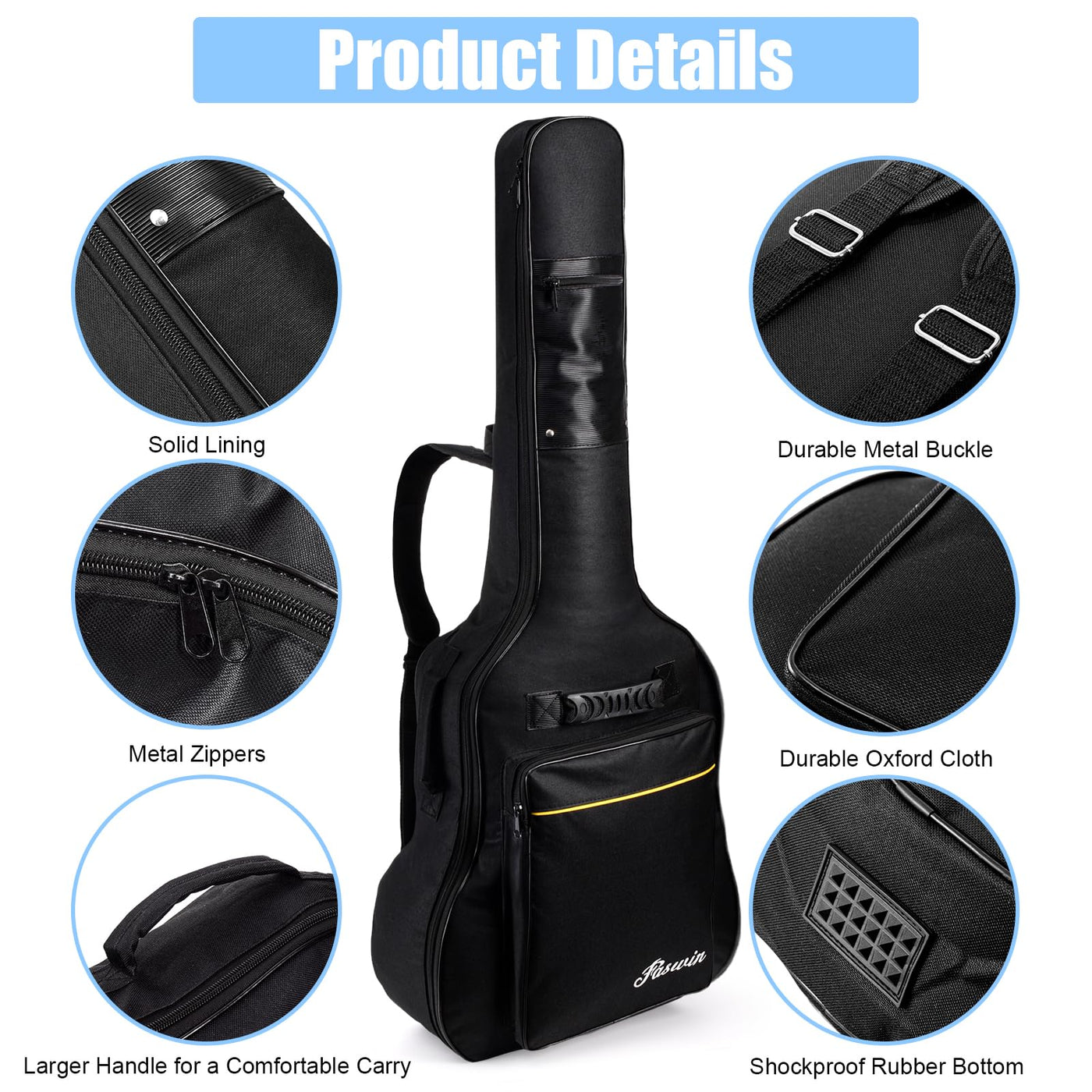 Faswin Acoustic Guitar Padded Gig Bag Is Ideal For Transporting Your Valuable Guitar.