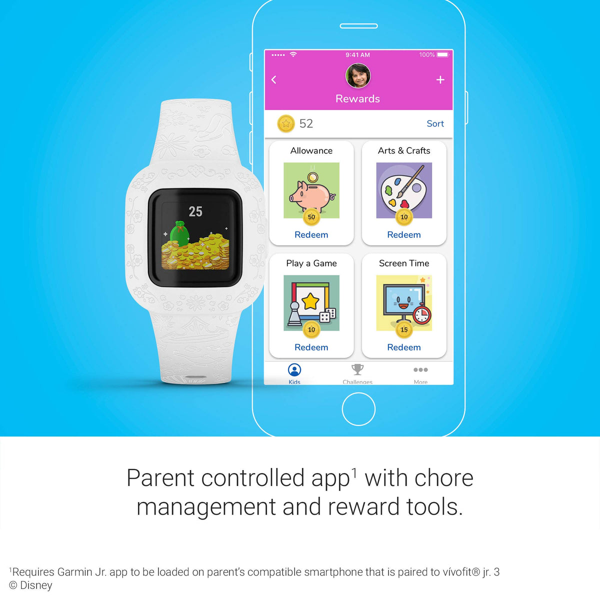 Garmin Vivofit Jr. 3, Fitness Tracker For Kids, Swim-Friendly, Up To 1-Year Battery Life, Disney Princess, Adjustable Watch