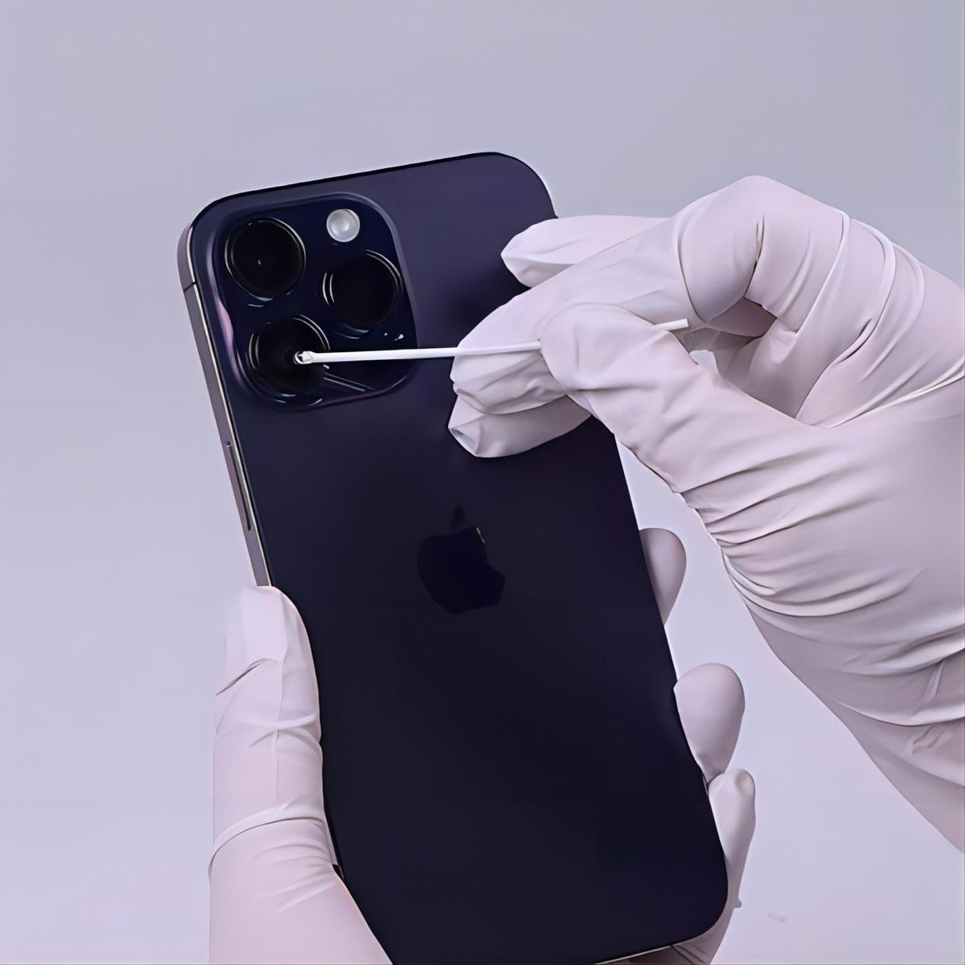 Q: What surfaces can the Sticky Swab Gel be used on?A: The Sticky Swab Gel is designed for cleaning a variety of surfaces, including camera lenses, cell phone screens, LCD displays, semiconductors, circuit boards, and other sensitive electronics. Its soft, round head allows for precise cleaning in hard-to-reach areas.