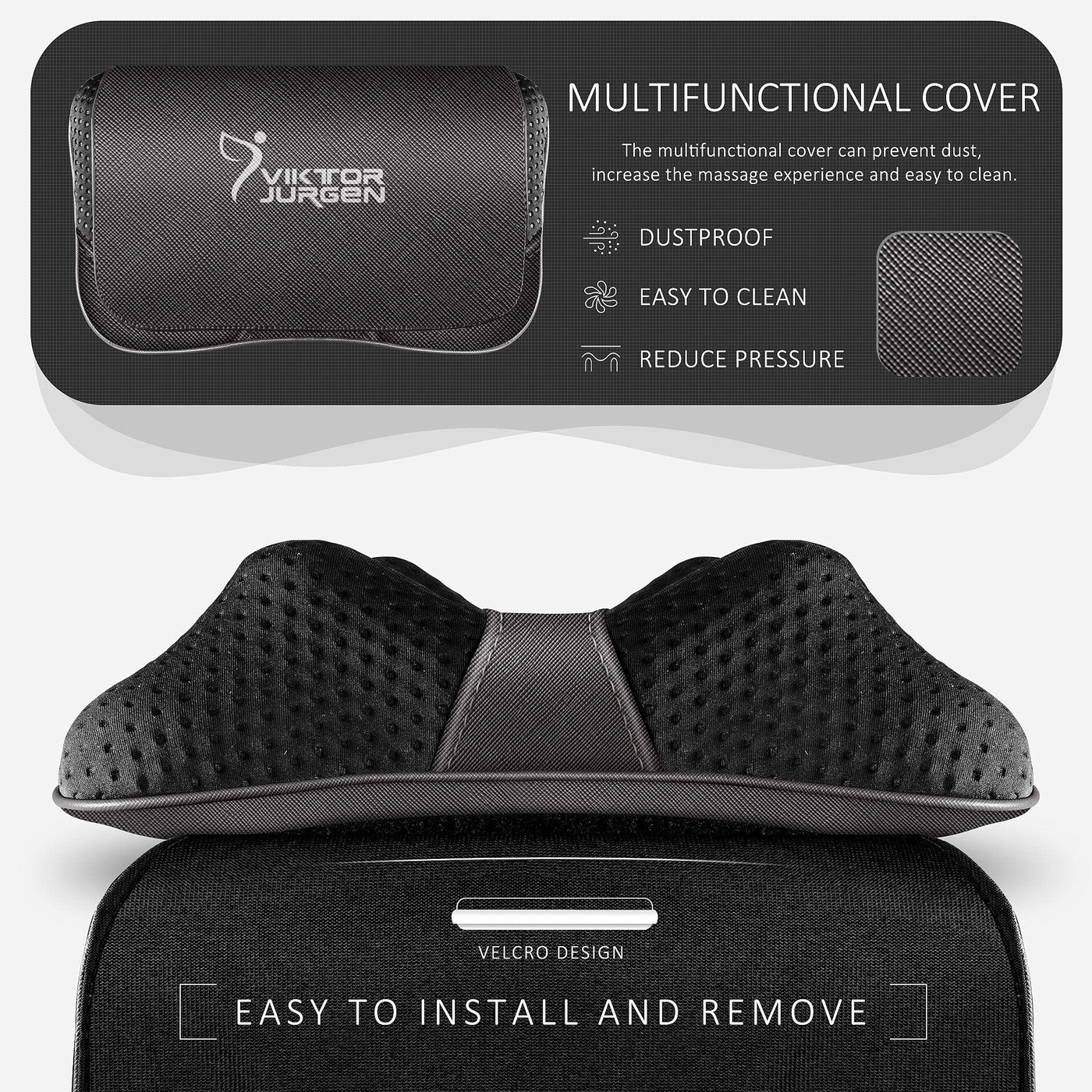 Q: How do I clean and maintain the VIKTOR JURGEN Back Massager?A: To clean the VIKTOR JURGEN Back Massager, simply use a damp cloth to wipe the faux leather material. Ensure that the device is unplugged before cleaning. Avoid using harsh chemicals or submerging the massager in water.