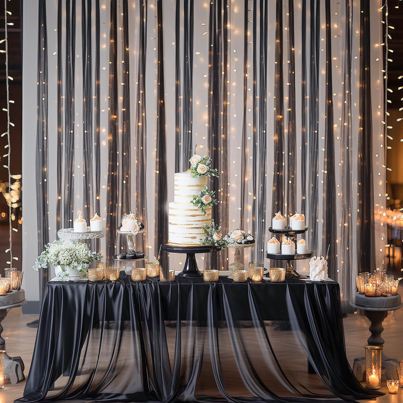 10 10Ft Black Tulle Backdrop Curtain With Lights String For Parites, Sheer Curtain Backdrop Drapes For Wedding Party Home Decor