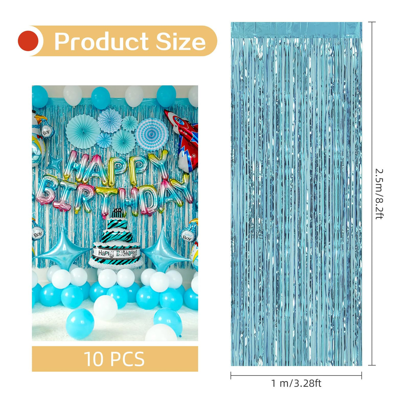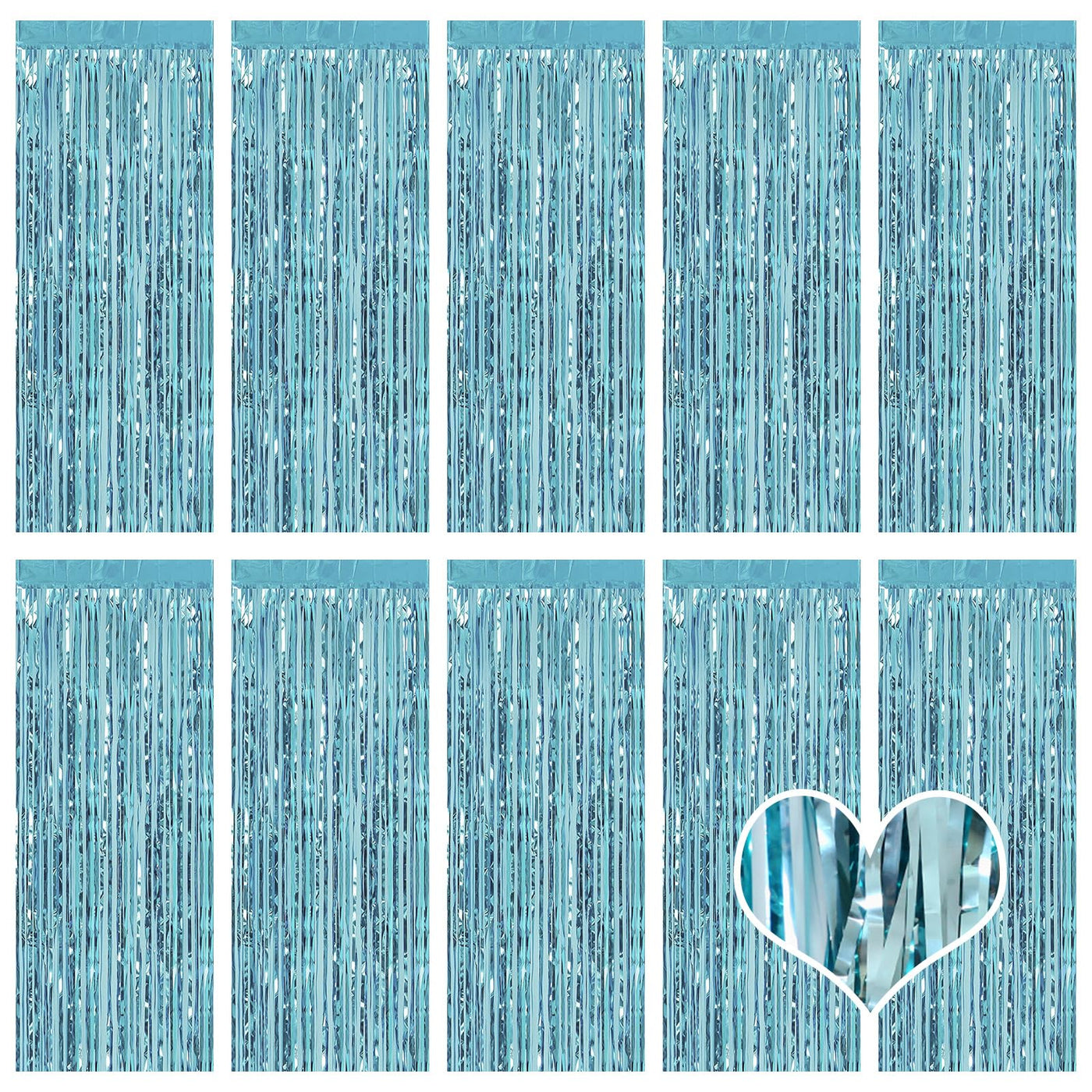 10 Pack Blue Backdrop Curtain 3.2Ft X 8.2Ft Metallic Tinsel Foil Fringe Curtains Photo Booth Background For Birthday Party Decor