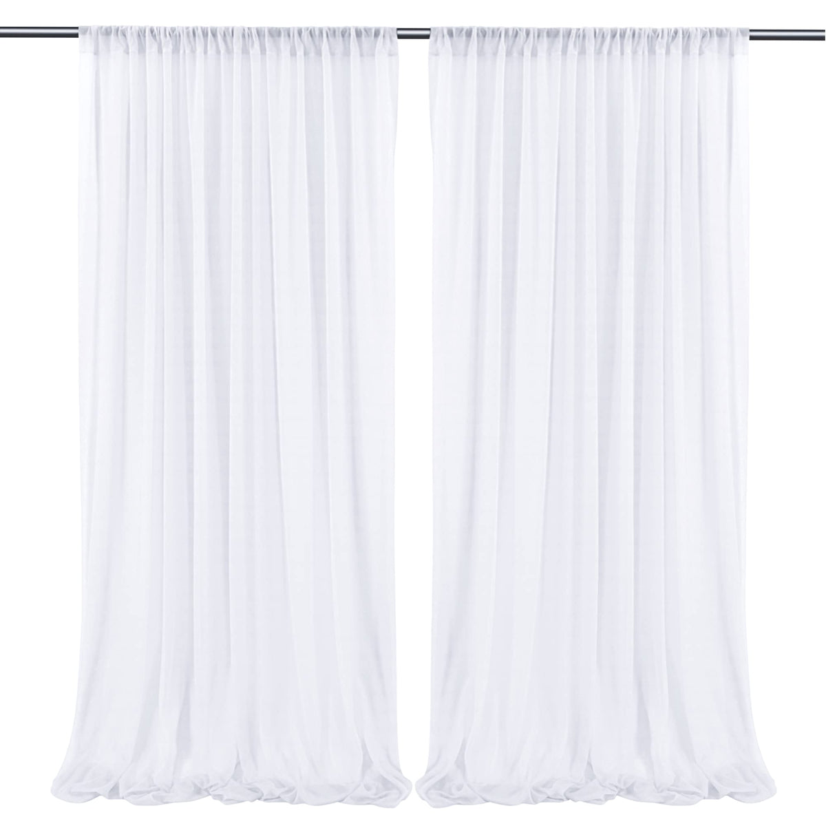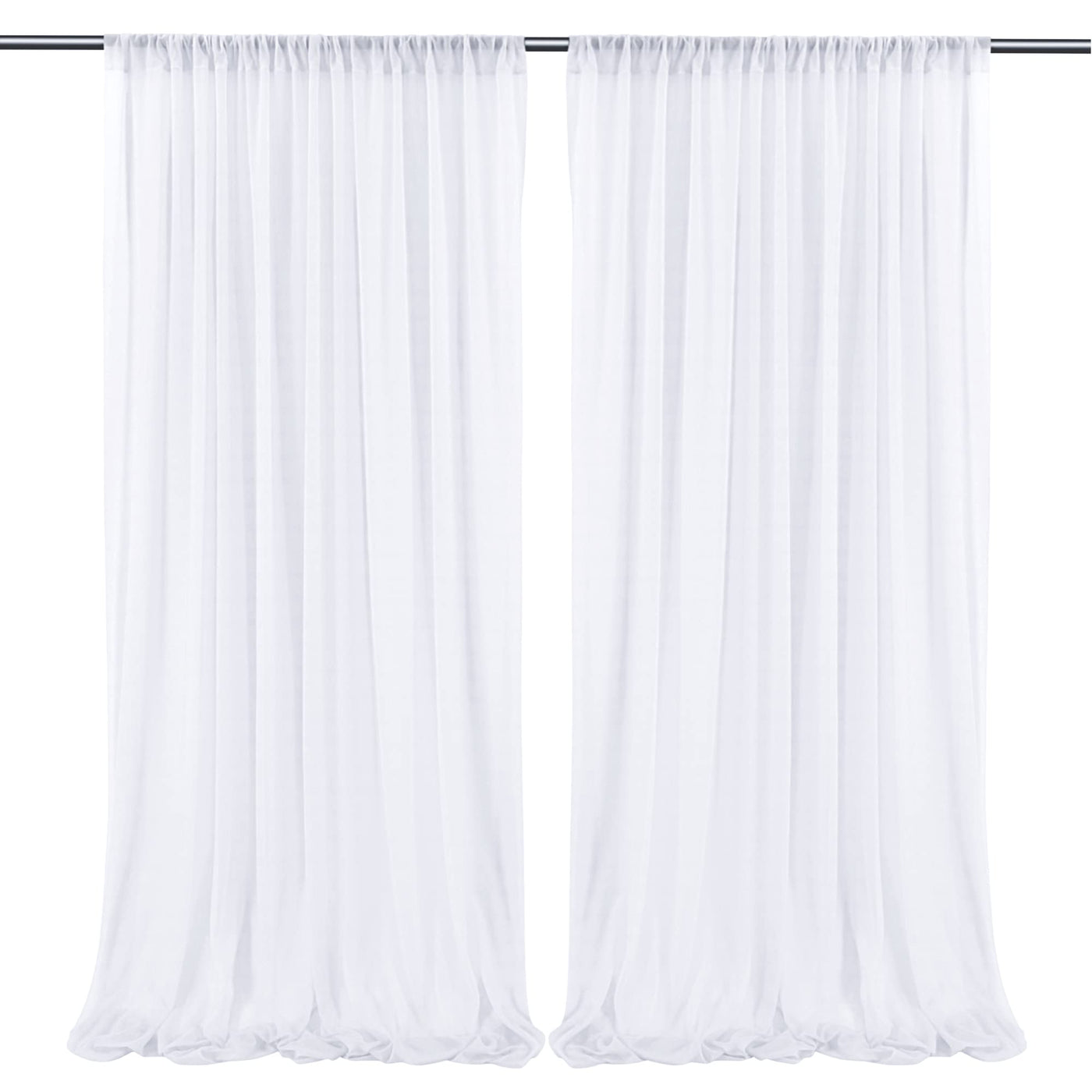 10Ft X 10Ft White Chiffon Backdrop Curtains, Wrinkle Free Sheer Chiffon Fabric Curtain Drapes For Wedding Ceremony Arch Party St