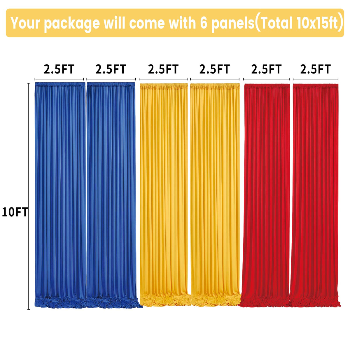 10Ft X 15Ft Thick Backdrop Curtain For Parties, Yellow Red Royal Blue Wrinkle Free Photography Backdrop Drapes, 6 Panels 2.5Ft X