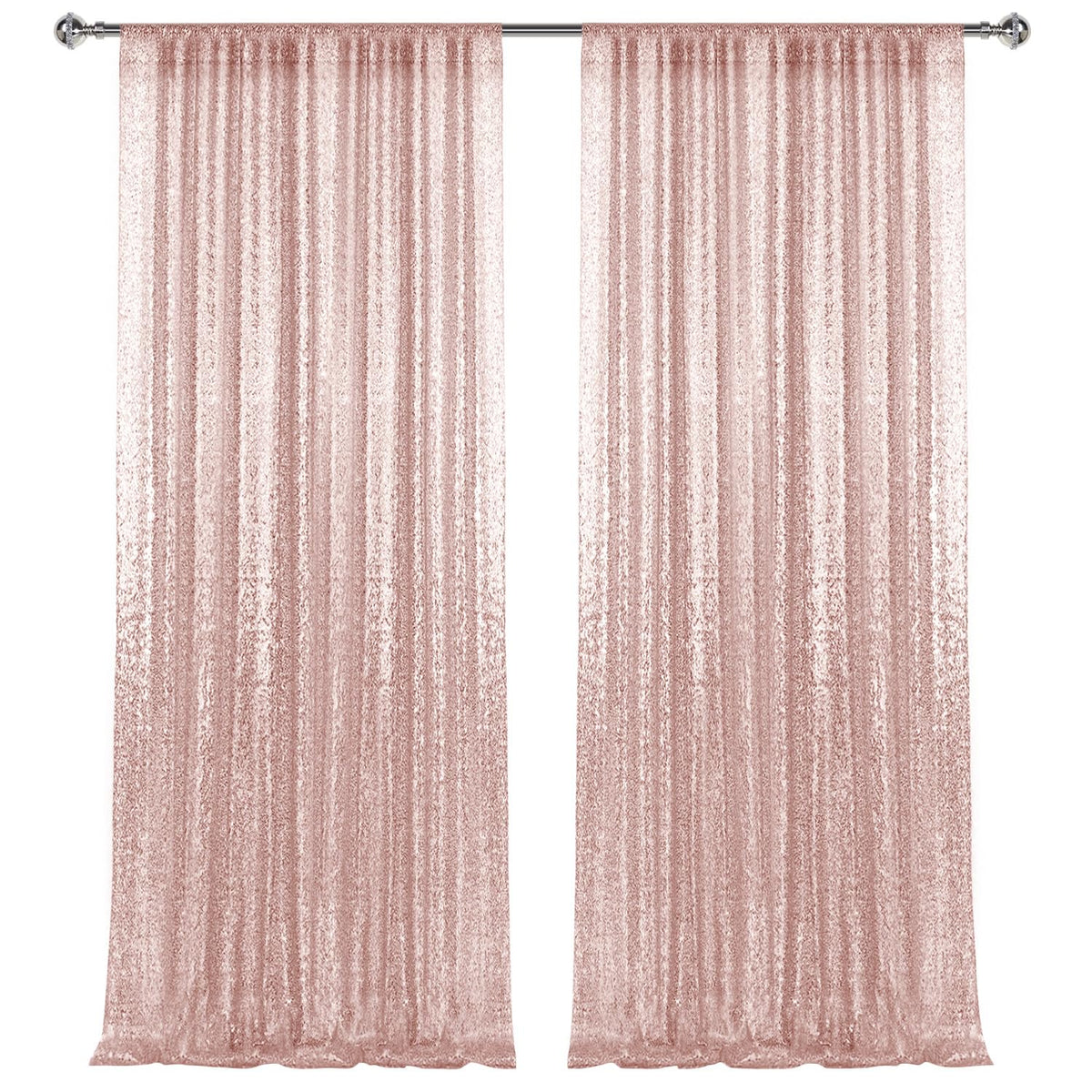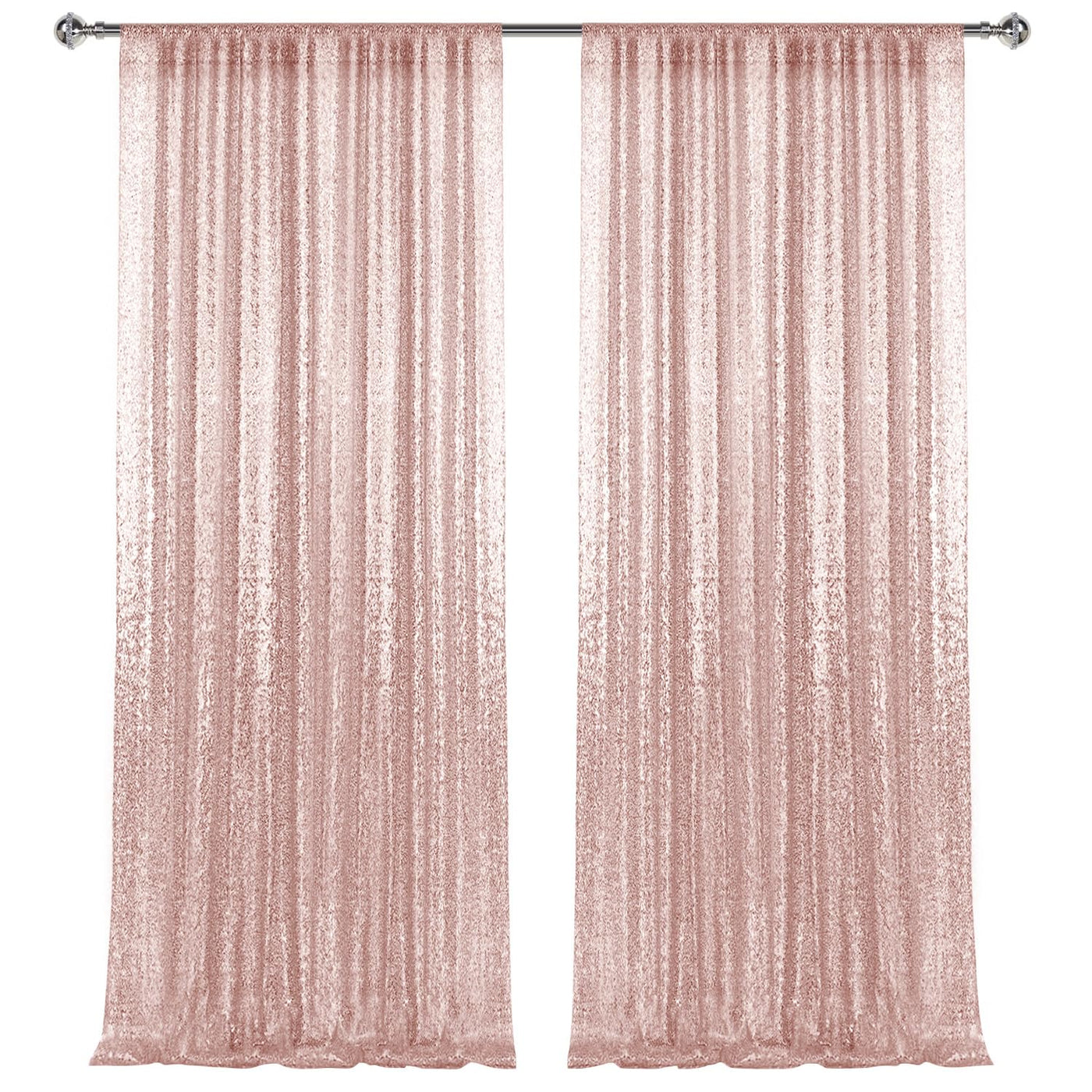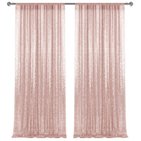 2 8Ft 2Pcs Rose Gold Sequin Backdrop Curtains Panels, Photography Backdrop Glitter Curtains Fabric Background For Christmas Wed