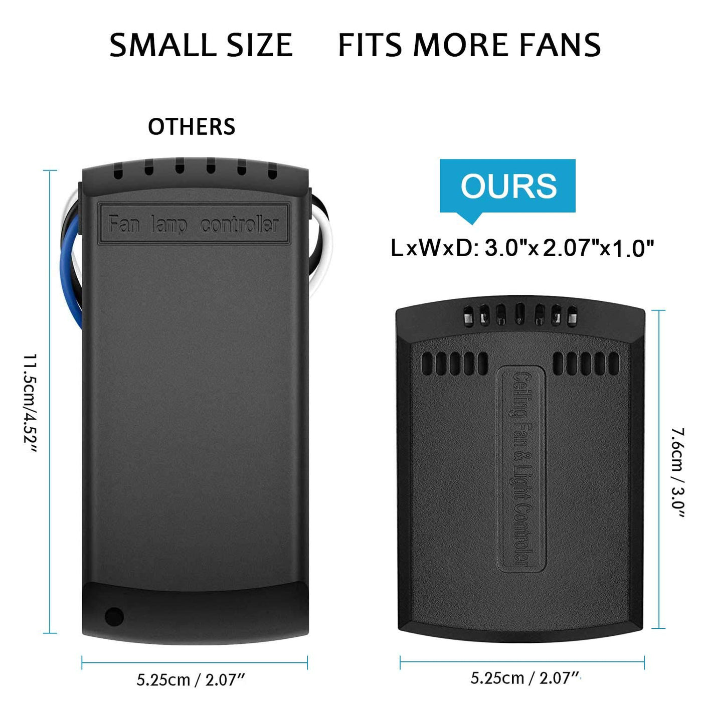 Want To Add Remote Function To Your Pull Chain Fan Light Or Fan? This Universal Fan Remote Control Kit Converts Regular Ceiling Fan Into A Remote Controllable One. It Is A Great Add On Item When You Want A Remote Control To Turn Your Ceiling Fan On/Off, As Well As Turn The Light On/Off. Fan Light Remote Control: Lamp/Fan On/Off Control 3 Modes Fan Speed Control [Hi/Med/Low] 4 Timing Control [1/2/4/8 H] Fan Remote Control Installation: Remove Your Ceiling Fan And Work With The Wires And Holding Bracket To Find The Right Amount Of Space To Install The Ceiling Fan Remote Unit. To Be Aware How Much Space You Have In The Fan. Some ''Slimline'' Fans May Not Be As Easy To Hide The Controller Unit.(Please Calculate Before Buy Or You Have To Install The Receiver Outside The Canopy Which Is Not Not Beautiful) Remote Control For Ceiling Fan Main Technical Parameters Input Voltage:110V Ac Frequency:50/60Hz Lights Controller:On/Off Wireless Transmission: Rf Wireless Digital Transmission Technology Is Adopted To Realize The One-To-One Control Remote Control Range:100Ft Battery:2 Aaa Battery Needed( Not Include) Please Double Check The Size Of The Receiver Carefully To Make Sure There Is Enough Space In The Canopy Of Your Fan. Please Double Check The Size Of The Receiver Carefully To Make Sure There Is Enough Space In The Canopy Of Your Fan.Please Double Check The Size Of The Receiver Carefully To Make Sure There Is Enough Space In The Canopy Of Your Fan.
