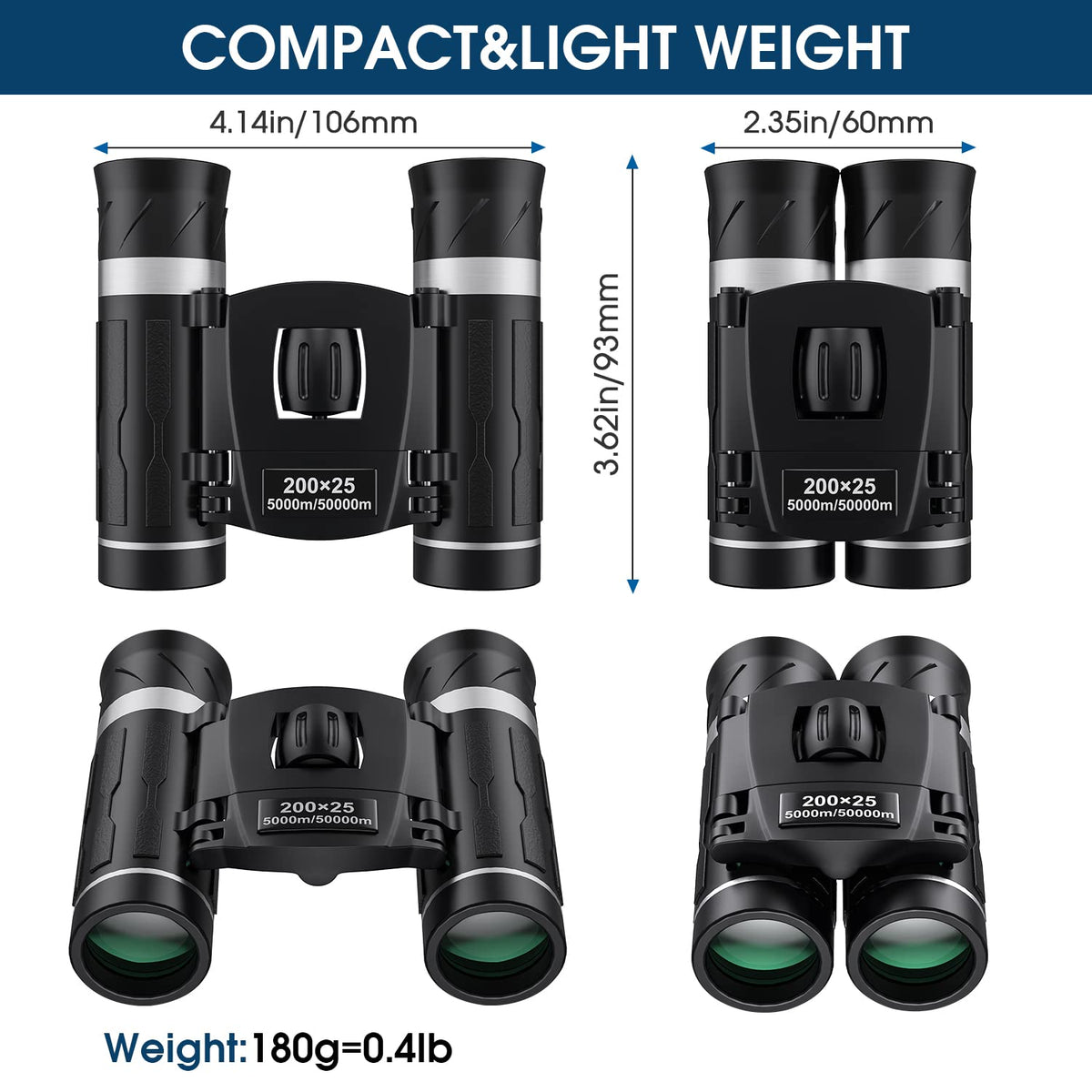200X25 Compact Binoculars For Adults And Kids, High Powered Mini Pocket Binoculars, Waterproof Small Binoculars For Bird Watchin