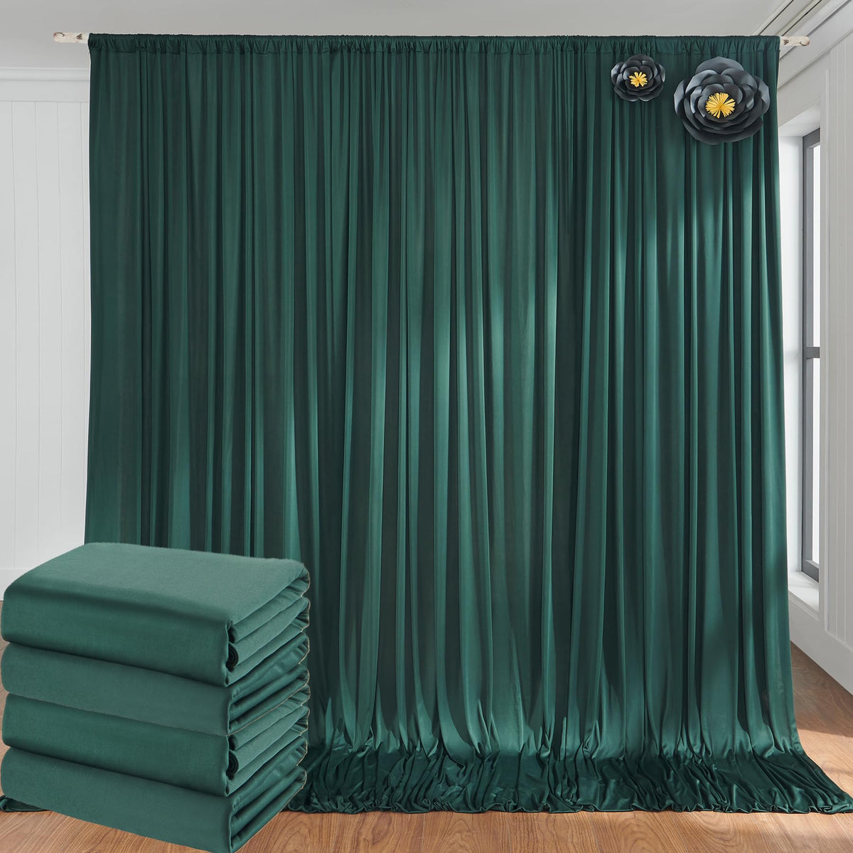 20Ft X 10Ft Wrinkle Free Hunter Green Backdrop Curtains For Parties, 4 Panels 5X10Ft Polyester Green Photo Backdrop Drapes For W