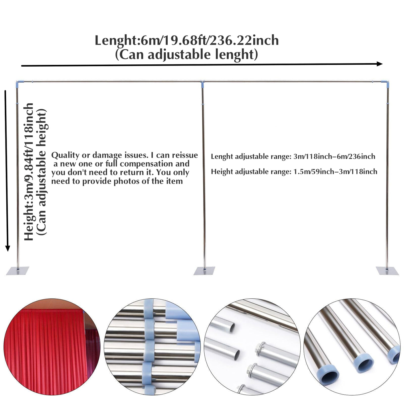 20Ft X10Ft Adjustable Telescopic Backdrop Stand Heavy Duty Pipe And Drape Kit For Party Wedding Decoration Studio Photography Ba