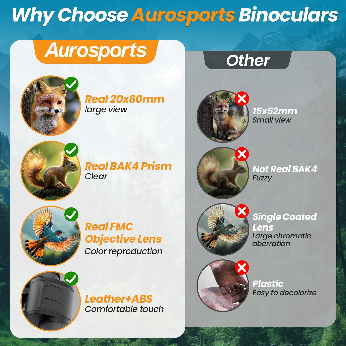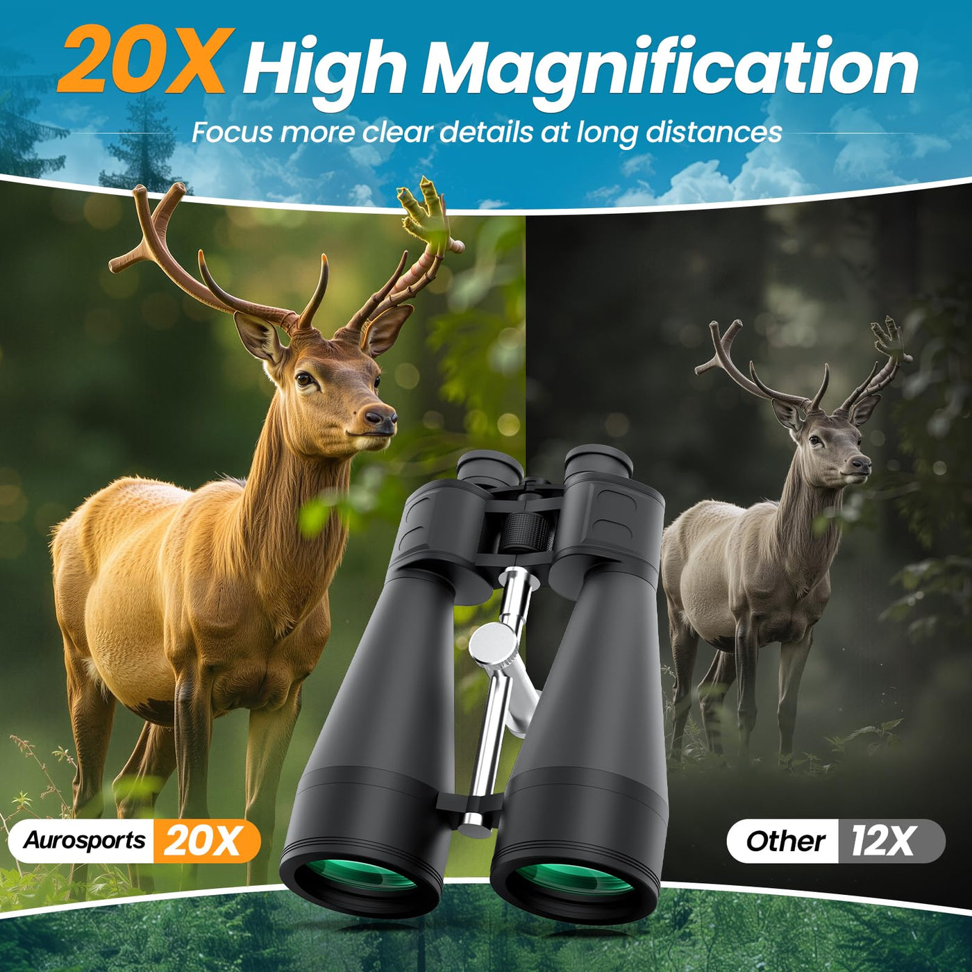 Aurosports 20X80 High-Powered Binoculars For Adults 1.Experience Unparalleled Clarity With 20X Magnification,Bring Distant Worlds Into Sharp Focus With Our Aurosports 20X80 Binoculars. Designed For Serious Outdoor Enthusiasts, These High-Powered Binoculars Deliver Stunning 20X Magnification, Allowing You To Observe Intricate Details Whether You'Re Bird Watching, Hunting, Or Exploring The Night Sky.2.Featuring An Impressive 80Mm Objective Lens Diameter, These Binoculars Capture 2.5X More Light Than Standard 50Mm Models. Exceptional Brightness In Low-Light Conditions, Enhanced Resolution For Seeing Finer Details,Reduced Eye Strain During Extended Observation Sessions. 3. High-Density Bak4 Prisms For Superior Light Transmission, Fully Multi-Coated Lenses With 95%+ Light Transmission, Reduced Glare And True-To-Life Color Reproduction. 4.Versatile Applications: Bird Watching, Astronomical Observation, Outdoor Adventures. 5.Package Includes: 1 X Binoculars1 X Carrying Bag1 X Comfortable Neck Strap1 X Lens Covers1 X Cleaning Cloth For Any Inquiries, Our Dedicated Team Of Experts Is Available To Provide 24-Hour Technical Support.